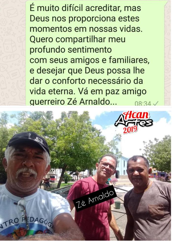 “ADEUS = A-DEUS: Não é uma despedida, é entregar nas mãos de Deus aquilo que não podemos mais cuidar. Que Deus possa dar descanso ao irmão José Arnaldo, meus sentimentos”. Israel Ribeiro-SEMED