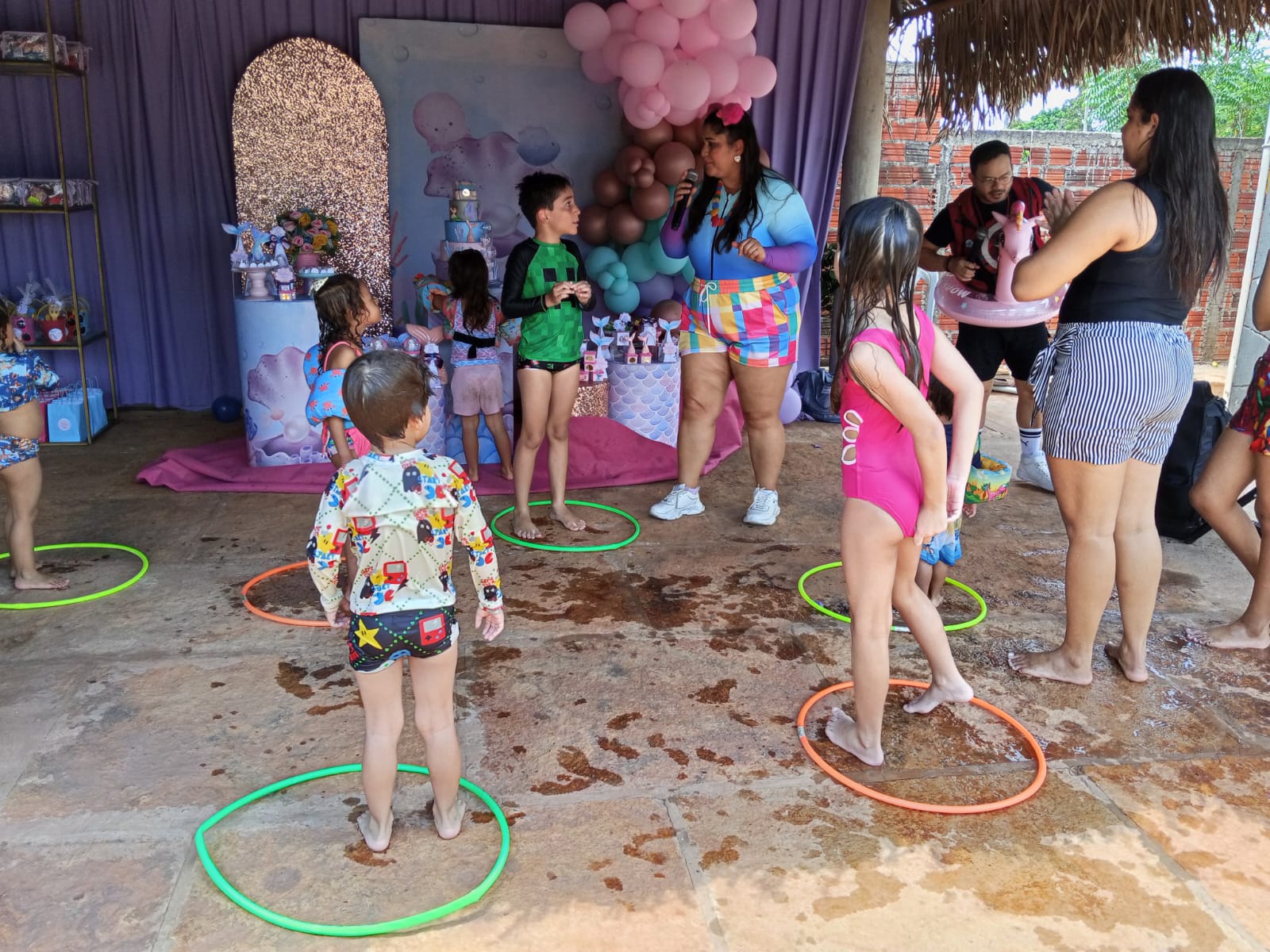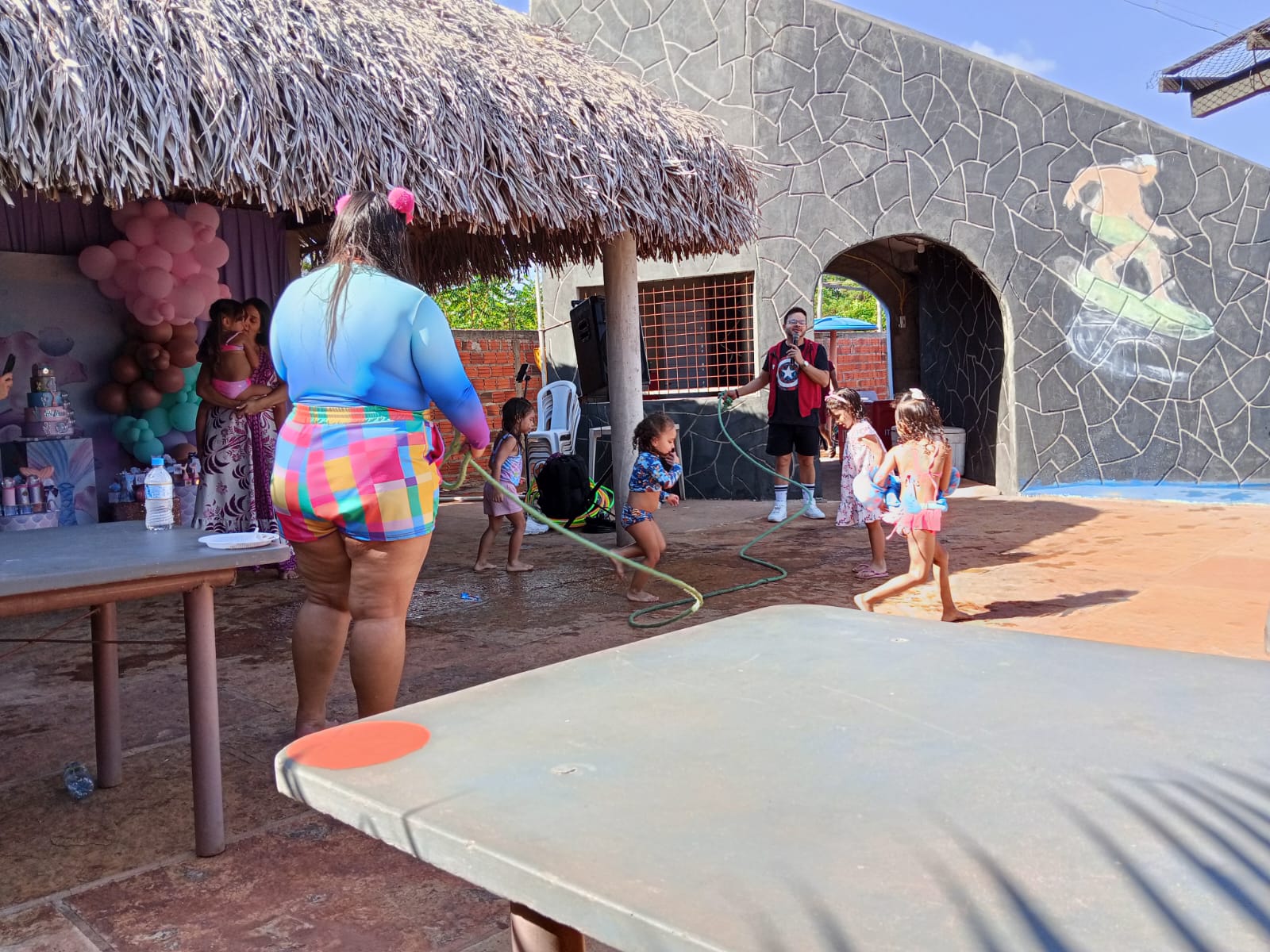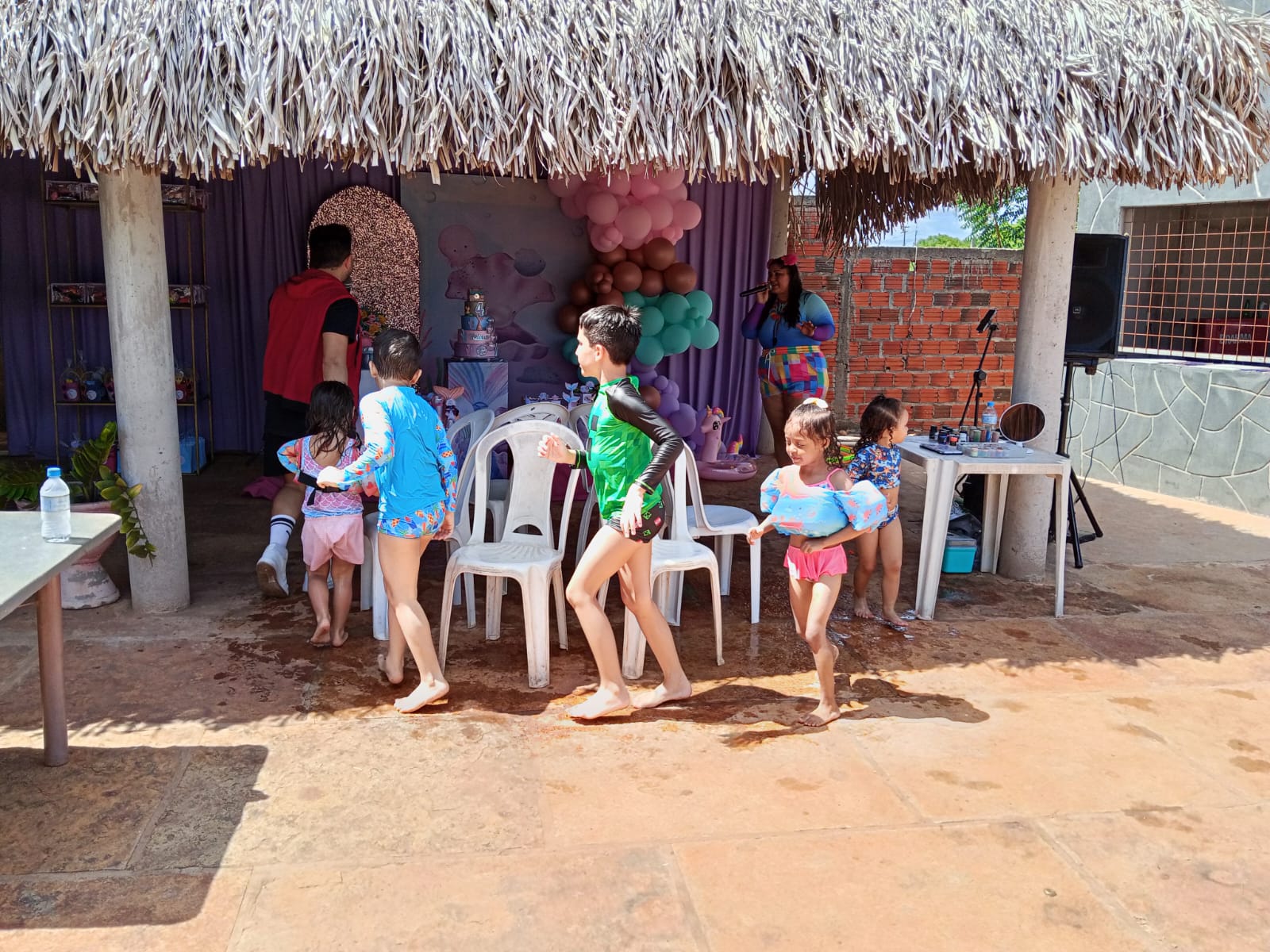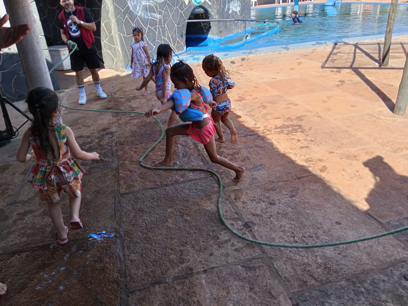 A garotada aproveitou cada instante: banho de piscina, cascata, muitas guloseimas, doces, balas, picolés, sorvetes e tudo que criança ama. O ponto alto da festa ficou por conta das brincadeiras comandadas pela equipe de animação, que garantiu risadas e felicidade com cabo de guerra, pula corda, cobrinha, dança das cadeiras, pintura nas crianças e várias outras atividades que deixaram o dia ainda mais especial.