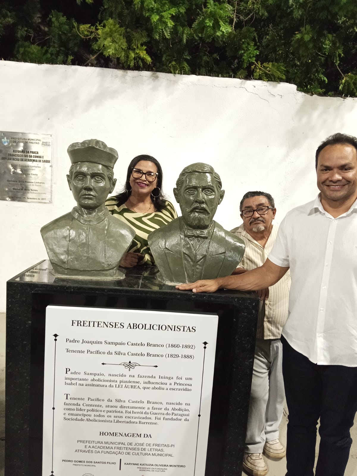 O evento contou com a presença do Prefeito Pedro Gomes, que destacou a relevância da homenagem e o orgulho de ver a cidade reconhecendo seus heróis. Também esteve presente o Presidente da Academia Freitense de Letras, Ciências e Artes (AFL), Gilmar Leite, acompanhado de membros da entidade, que ressaltaram o esforço coletivo para tornar possível a instalação dos bustos e a importância de manter viva a identidade cultural do povo freitense. Os membros da cultura do município estiveram presentes, pois tiveram fundamental importância neste ato.