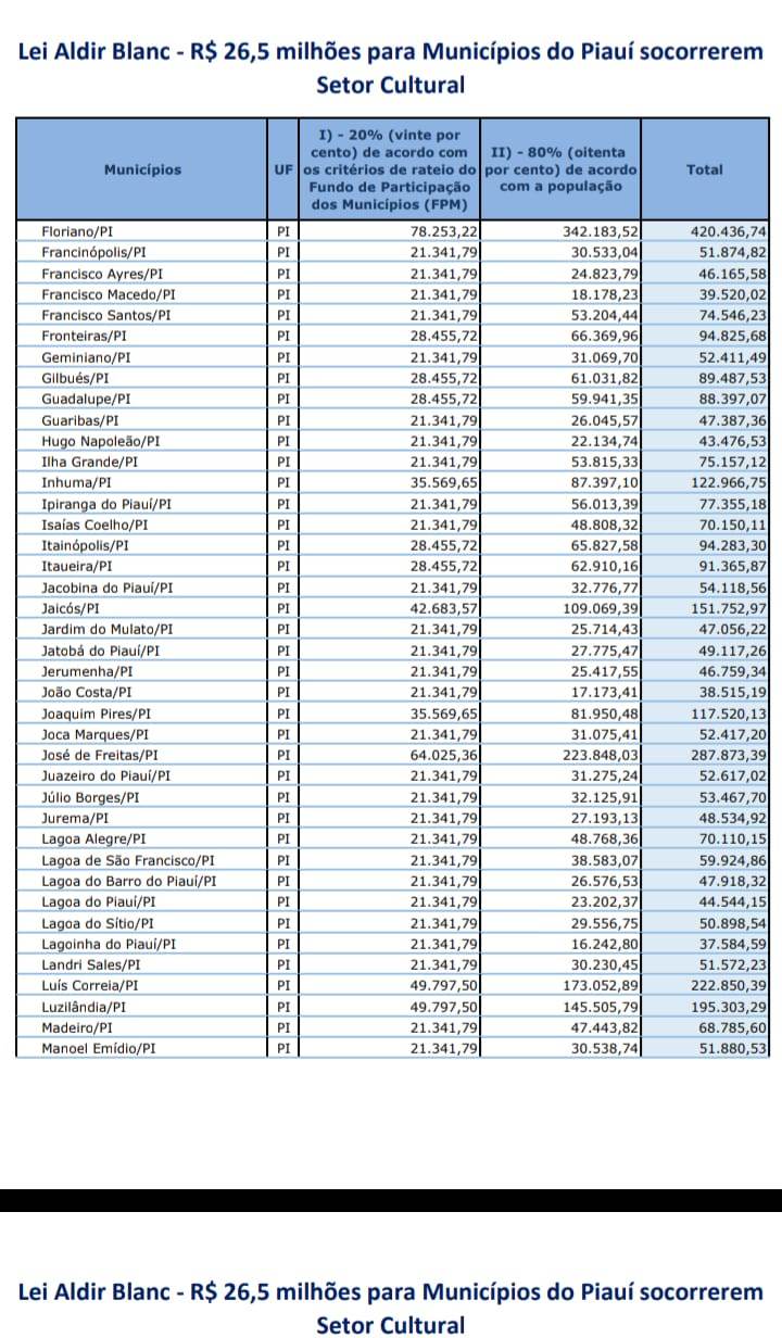 Do valor geral, 20% serão destinados para a manutenção de espaços artísticos e micro e pequenas empresas culturais que tiveram as suas atividades interrompidas por conta das medidas de isolamento social. As empresas precisam comprovar cadastro municipal, estadual, distrital ou de pontos de cultura.