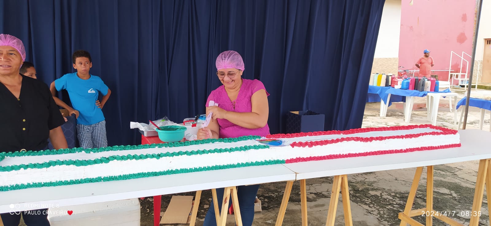 Célia Jerusa confeccionando o Bolo de 146 anos do aniversário da Cidade de José de Freitas.
