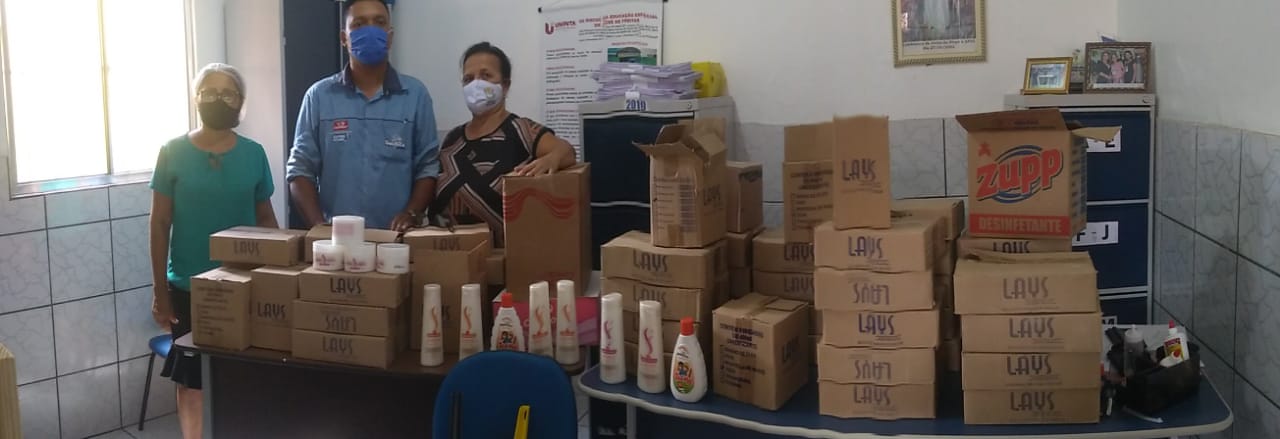 A Presidente da Apae de José de Freitas Professora Fernanda Vasconcelos Fortes Paiva juntamente com sua equipe recebeu das mãos do Senhor Josimar da Empresa Garra Distribuidora uma doação em produtos  de limpeza e cosméticos.