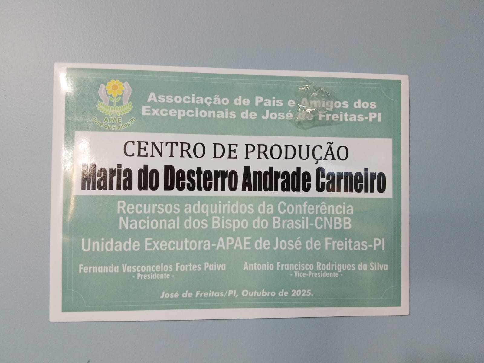 A Conferência Nacional dos Bispos do Brasil (CNBB), através de Edital 01/2025 do Fundo Nacional de Solidariedade (FNS), dar apoio financeiro a projetos relativos, projetos sociais e caritativos no Brasil. A APAE de José de Freitas, através da CNBB, conseguiu recursos para abertura do “Centro de Produção”.