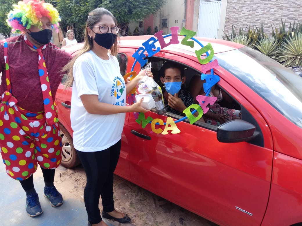 A ideia de um Drive Thru partiu da coordenadora Lucely Andrade, onde a diretora da escola Desterro Andrade abraçou a causa juntamente com toda equipe da Escola Especial Corina Freitas e funcionários da Apae. Foi um momento impar de muita alegria e satisfação.