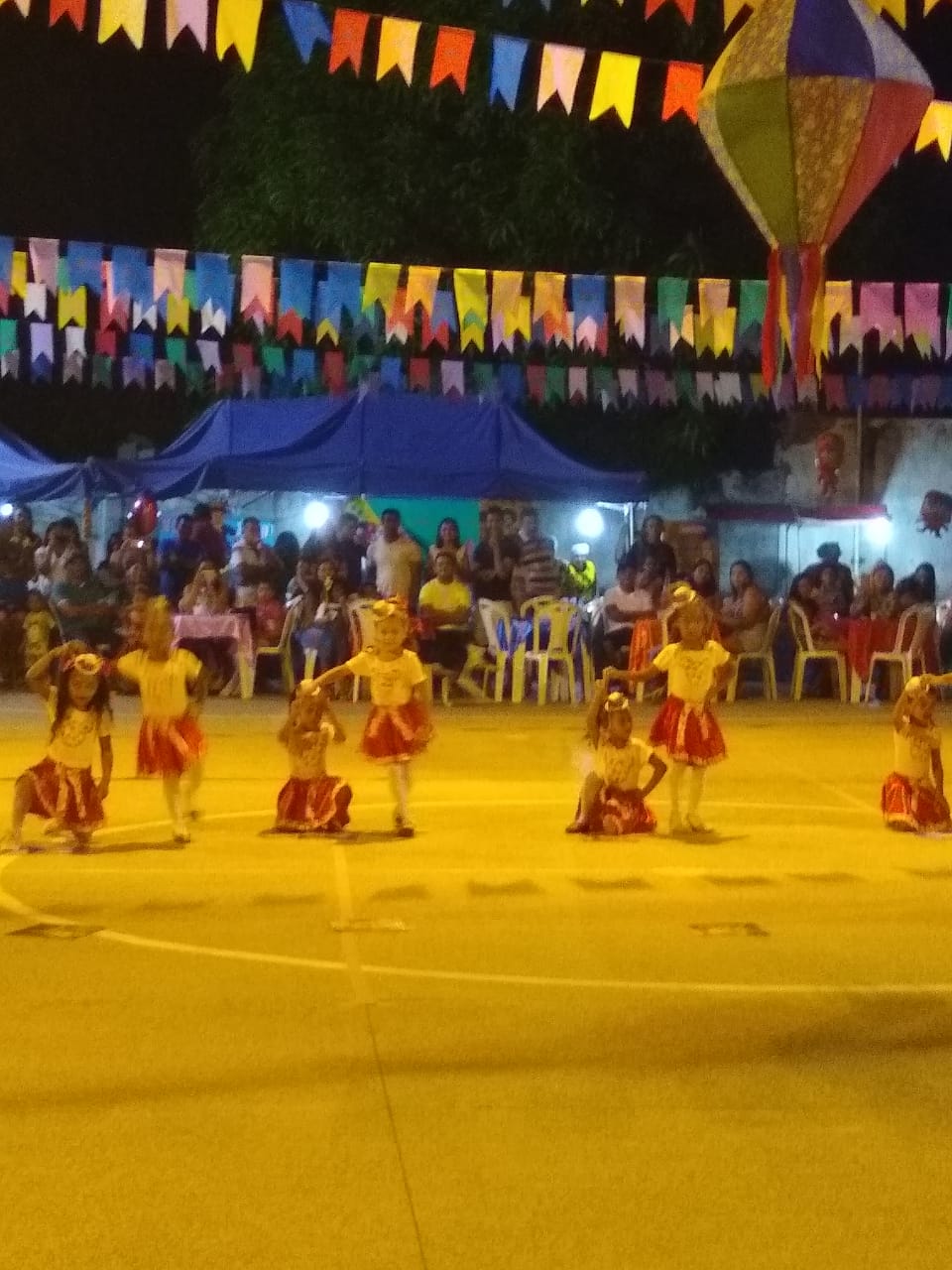 Muitas danças e quadrilha foi apresentada pelas crianças da escola acompanhada de suas professoras, comidas e bebidas típicas da época foram servidas e uma grande animação tomou conta da quadra da escola Agripina Portela. Tudo muito bem organizado, Parabéns!