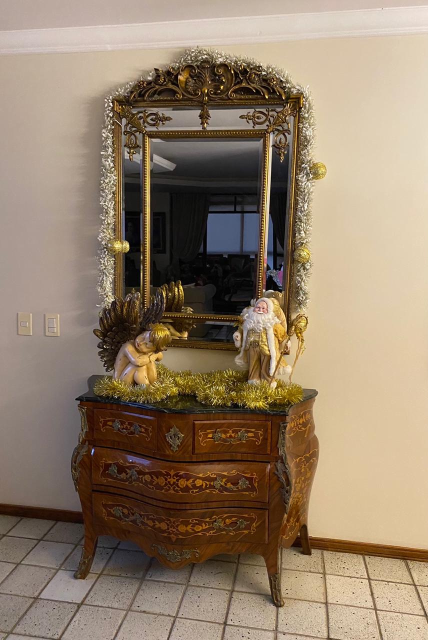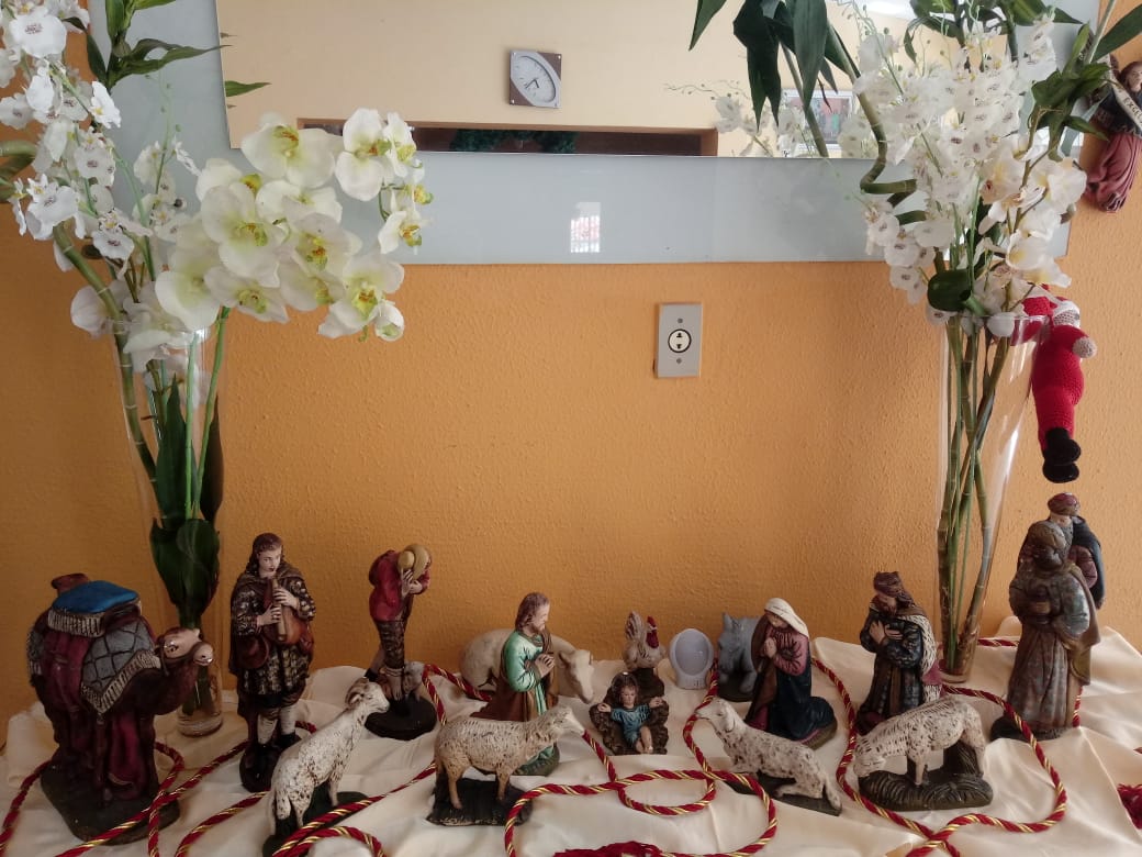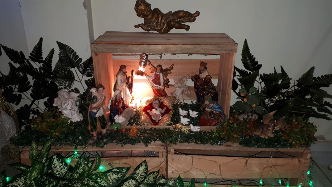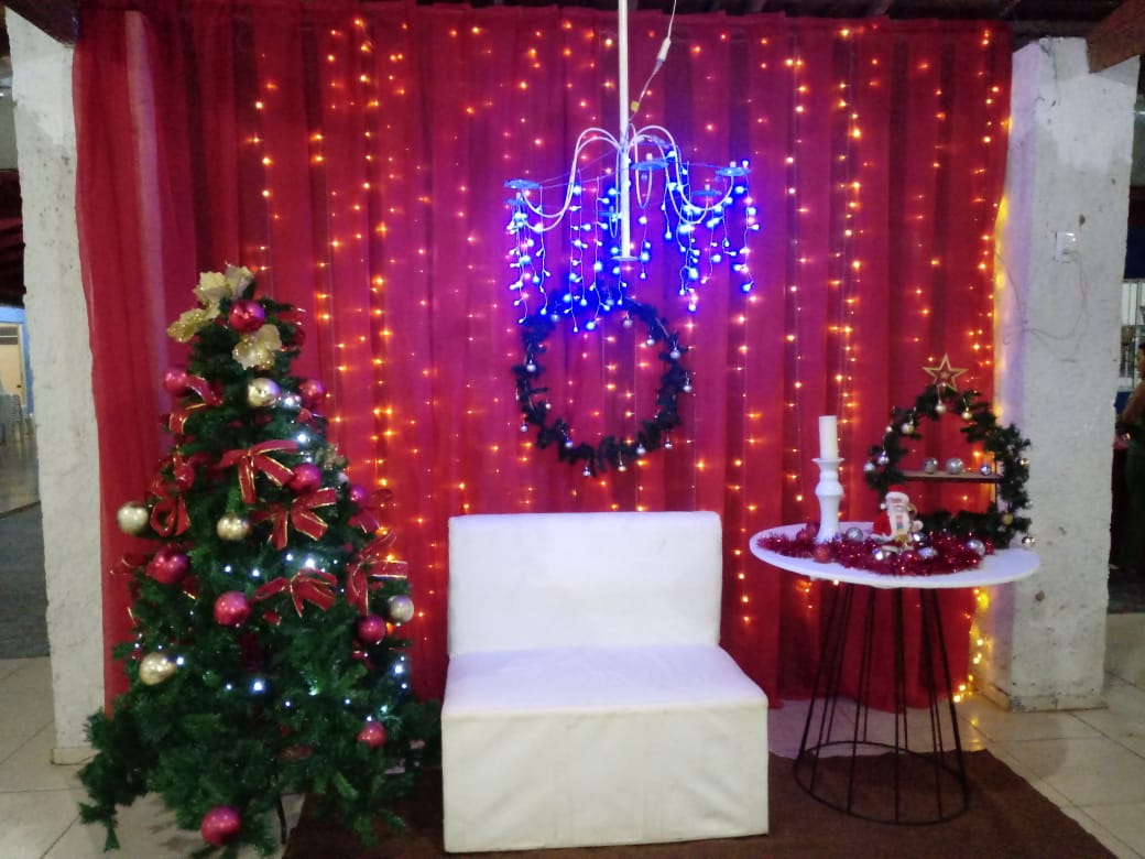 A casa fica toda arrumada com tema de natal, presépio, imagens e a linda árvore de natal, tudo para uma grande festa em família.