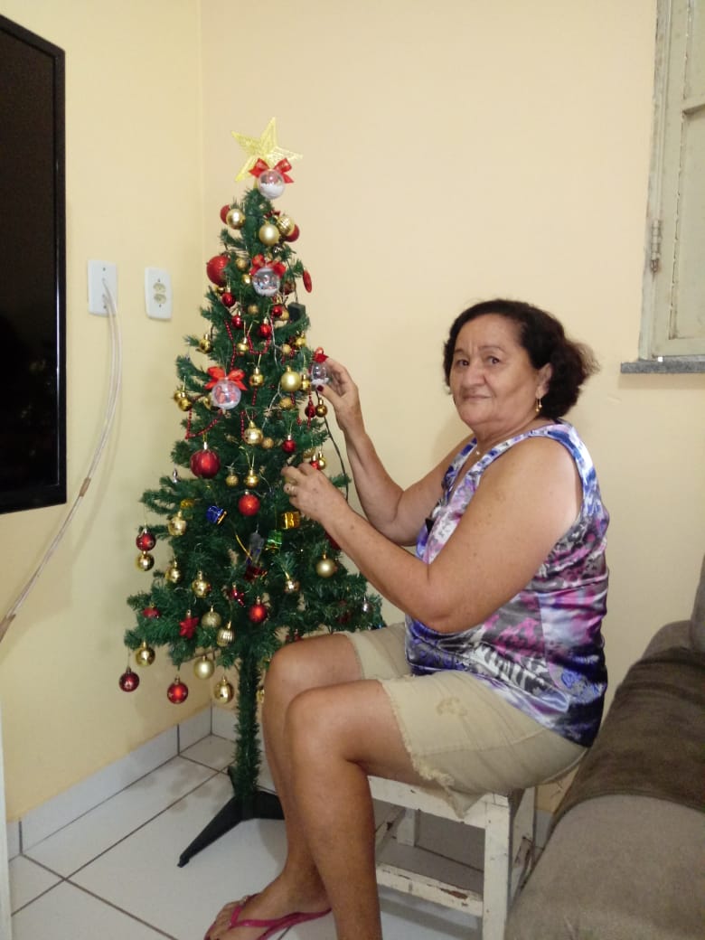 Maria de Fátima Alves mais conhecida e chamada carinhosamente de Fatinha há bastante tempo monta sua árvore de Natal com muito carinho e atenção, está sempre rodeada de amigos e sempre recebendo a visita das boas amizades.