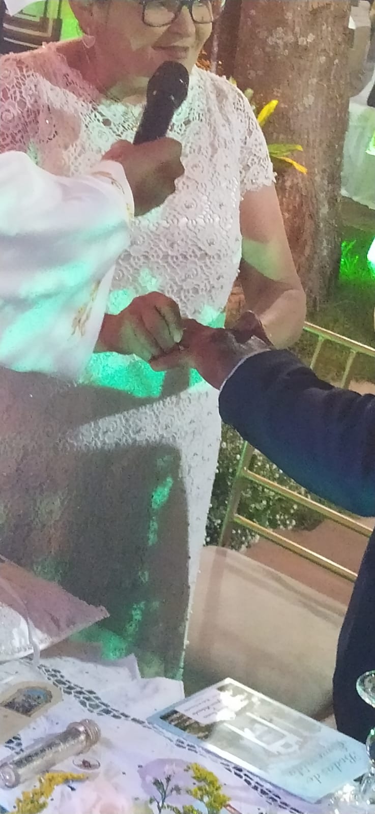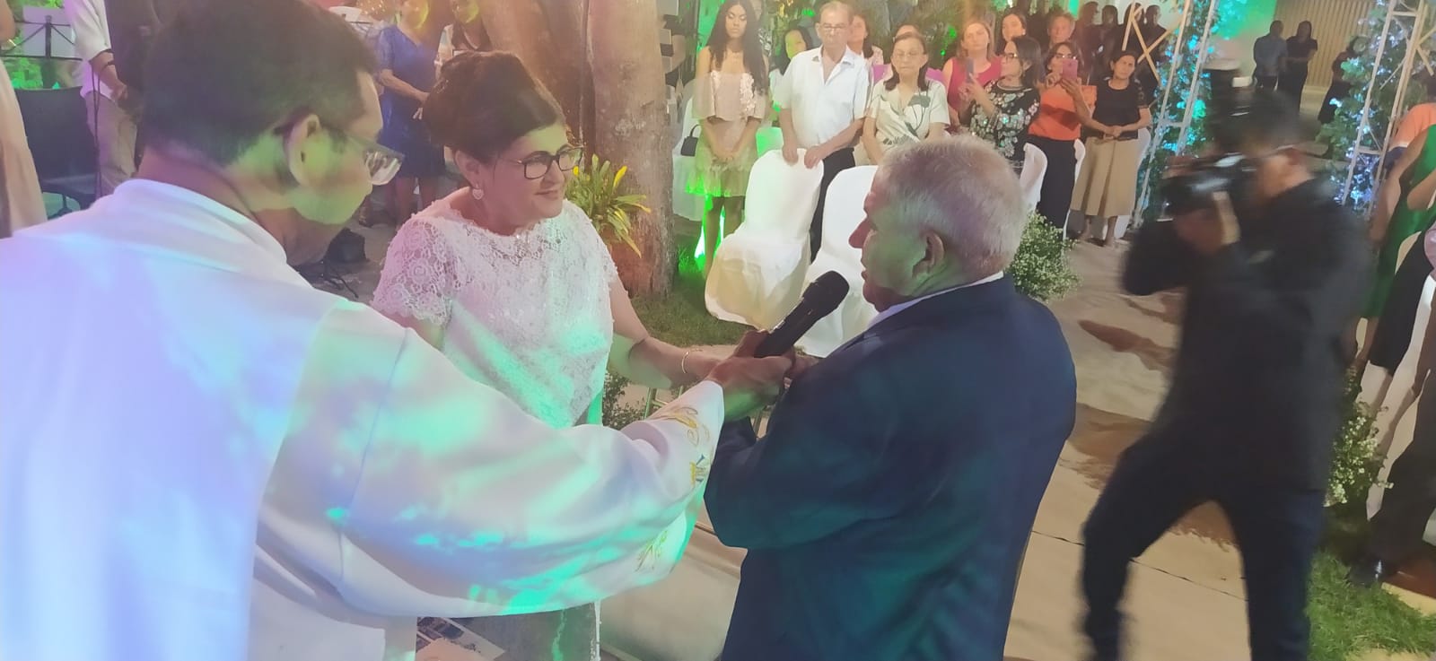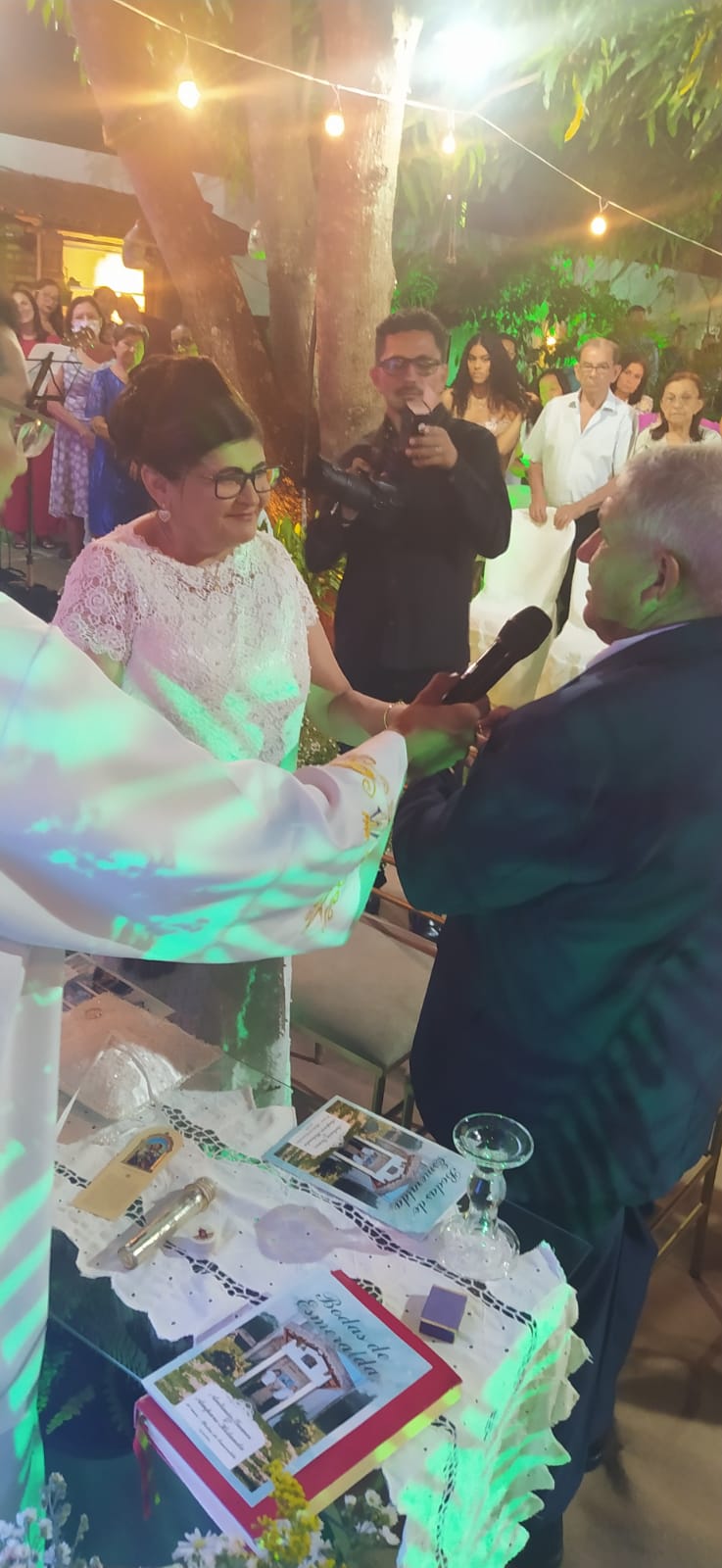 A cerimonia contou com todos os ritos de um casamento: Entrada do noivo Antônio, entrada da noiva Amparo acompanhada dos filhos  Alan e Alex. Teve o momento da entrada com as alianças e a entrada dos filhos com a imagem de Nossa Senhora do Livramento. Houve a troca de alianças com pedras de esmeralda e o juramento. Padre Gilcimar desejou votos de união e felicidades ao casal.