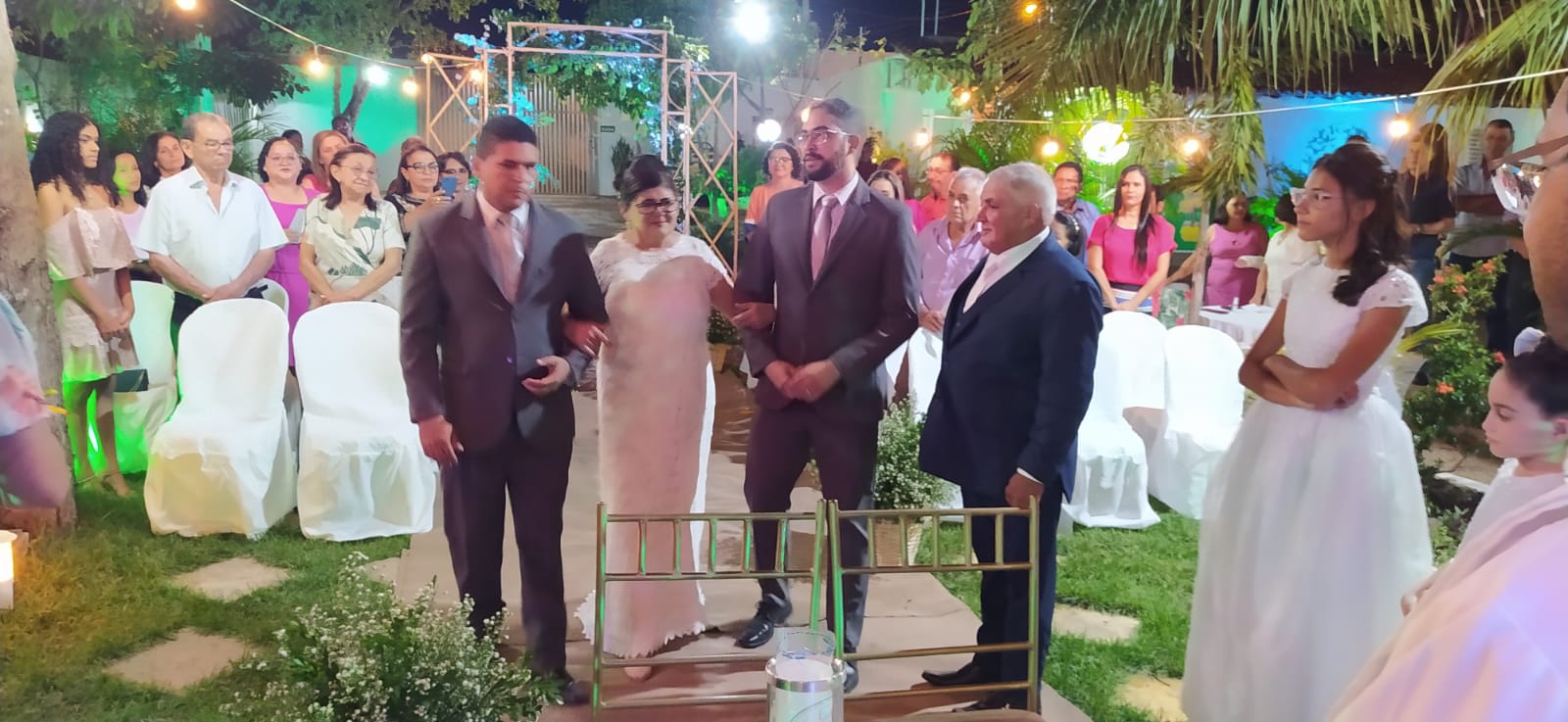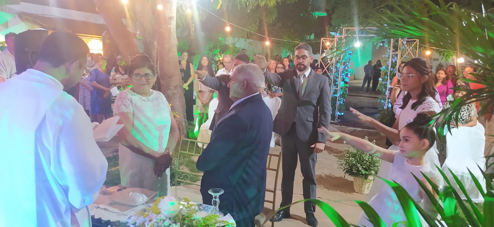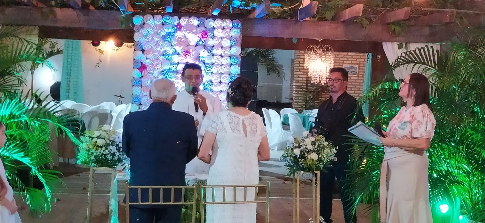 A cerimonia contou com todos os ritos de um casamento: Entrada do noivo Antônio, entrada da noiva Amparo acompanhada dos filhos  Alan e Alex. Teve o momento da entrada com as alianças e a entrada dos filhos com a imagem de Nossa Senhora do Livramento. Houve a troca de alianças com pedras de esmeralda e o juramento. Padre Gilcimar desejou votos de união e felicidades ao casal.