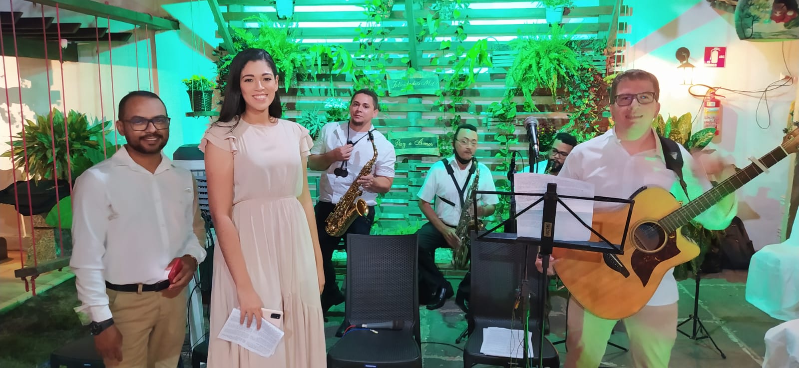 A noite foi animada por alguns grupos musicais, cada uma com sua modalidade musical, como musicas selecionadas pelo casal para relembrar o inicio da vida dos dois até hoje.