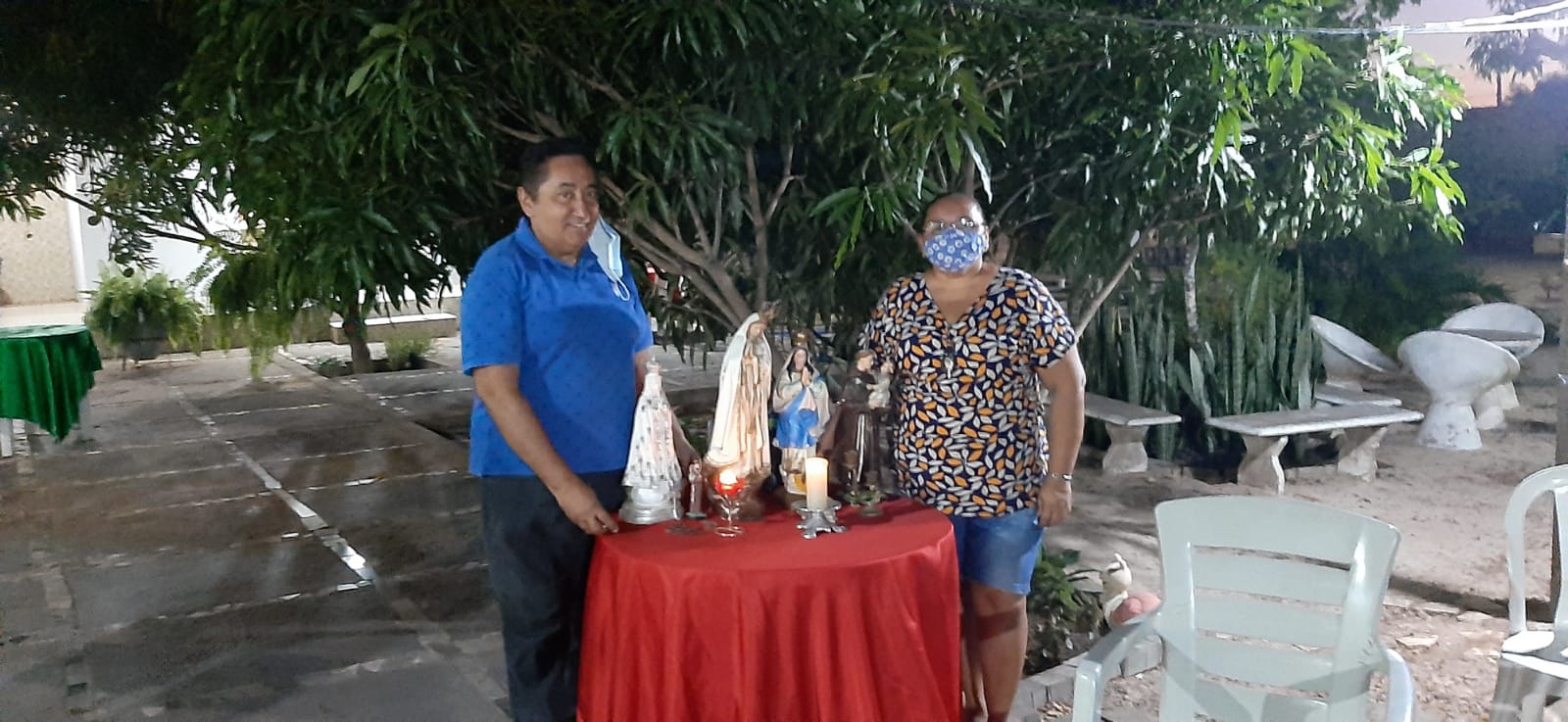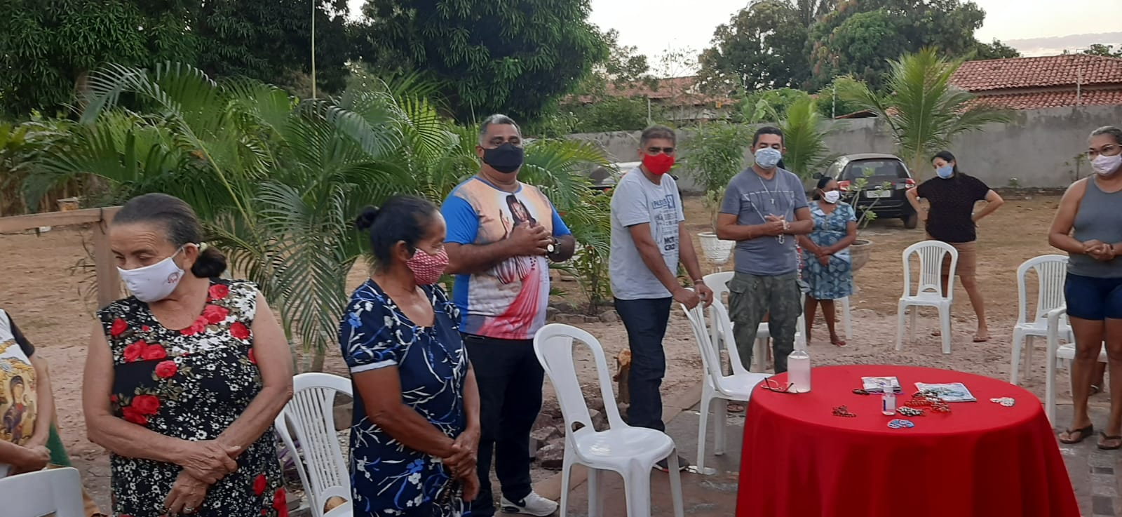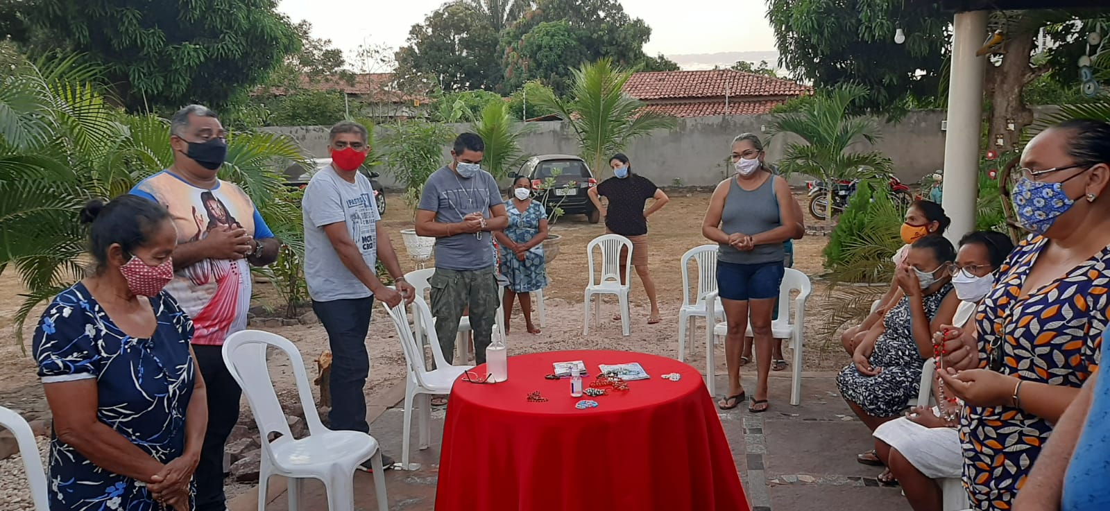 Alan e Princesa receberam os amigos, inclusive alguns que já tinham passado por esse processo de infecção da doença. Alguns vizinhos foram contribuir com este momento de oração. Foi rezado um terço em agradecimento pelo dom da vida e feito pedidos por muitos que já não estão entre nós. Alan agradeceu muito a todos que em suas orações lembraram dele, agradeceu muito aos familiares que foi seu maior suporte, emfim disse estamos aqui para agradecer a Deus por estarmos com vida. No encerramento foi cantado o hino da Padroeira de Nossa Senhora do Livramento.
