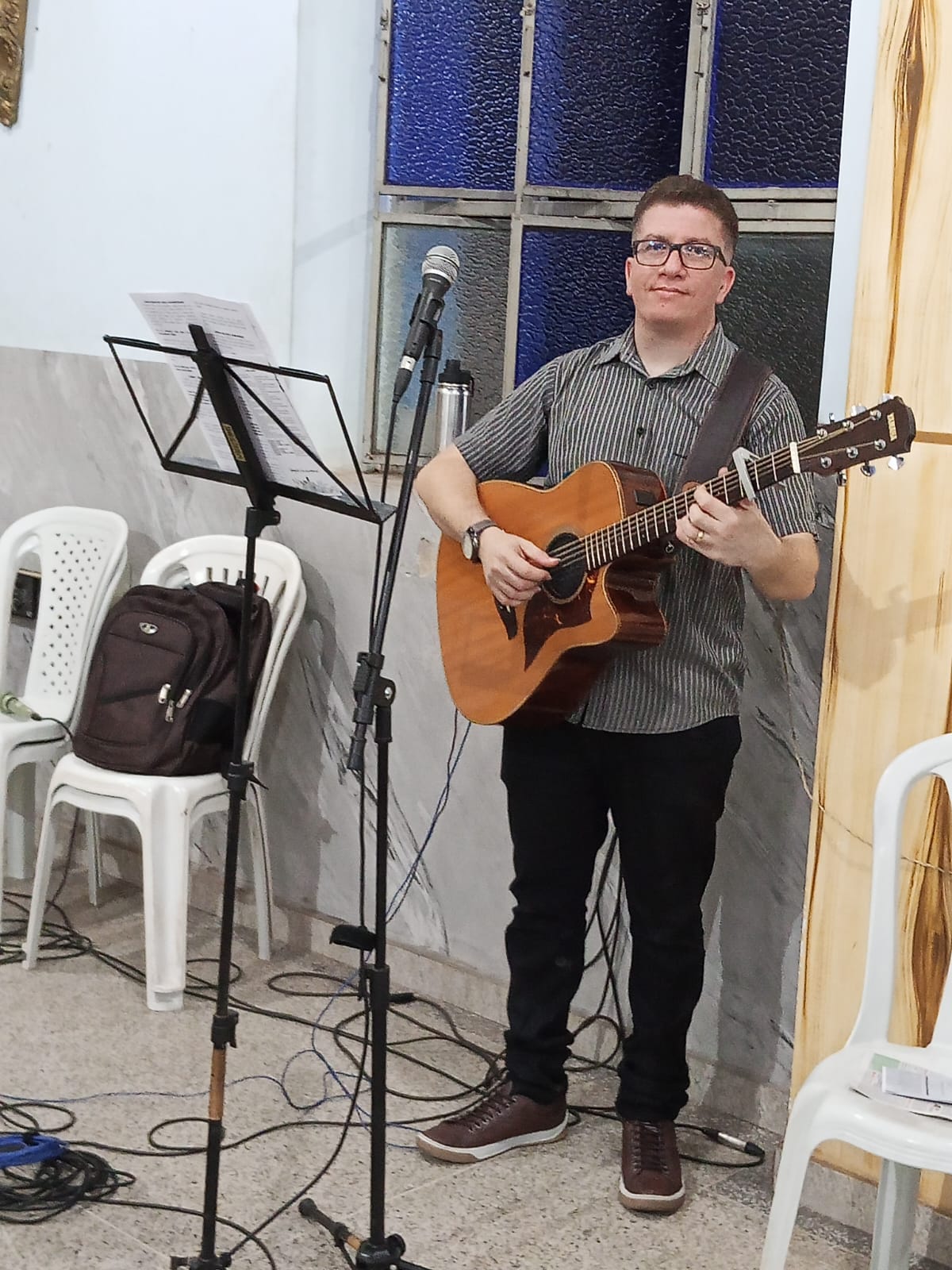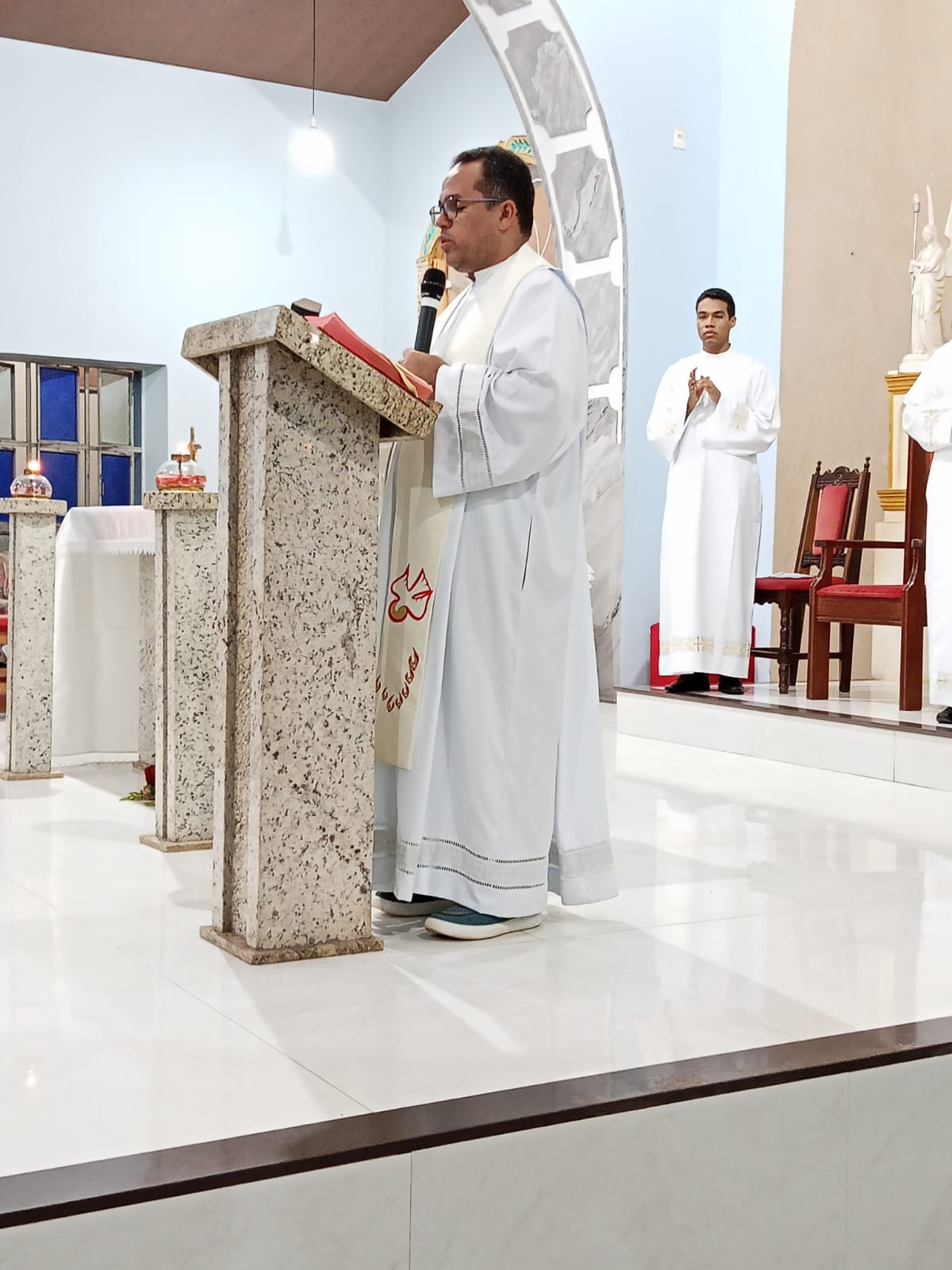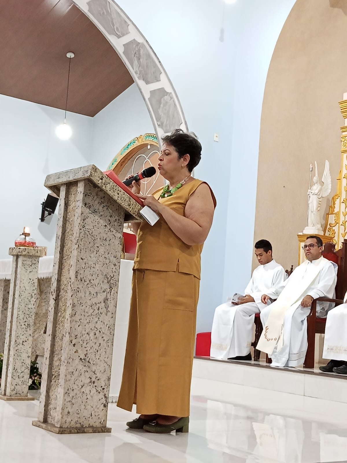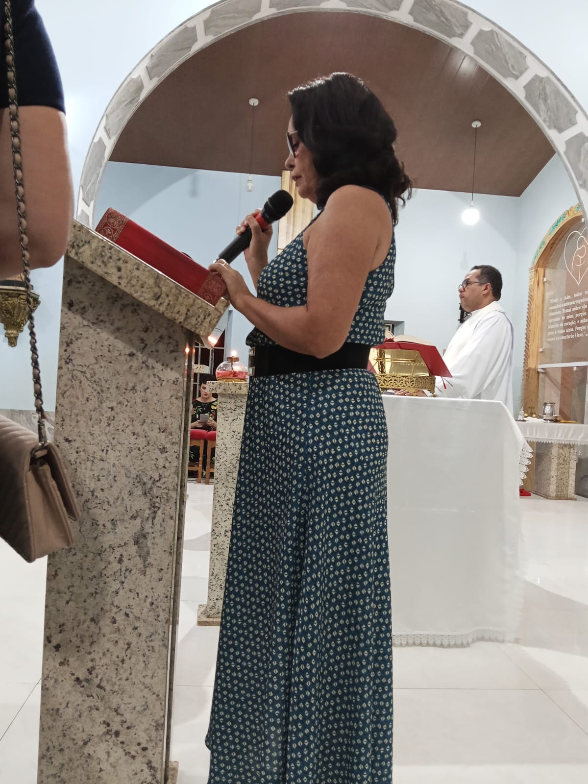 Padre Francisco José fez a leitura do Evangelho de Jesus Cristo segundo Lucas (13,22-30). As leitura anteriores , foram feitas, a primeira leitura pela filha Miriam e a segunda leitura pela nora Linda.