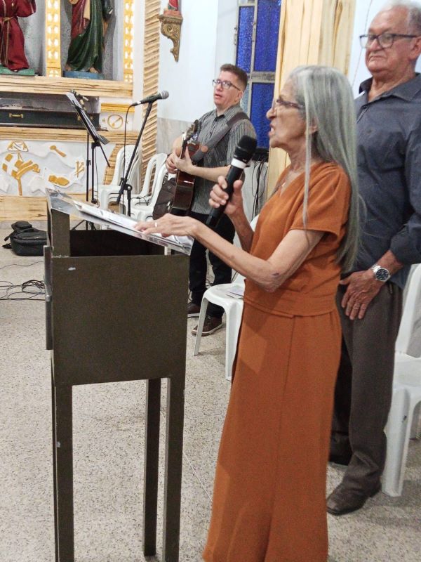 Ao final da missa uma neta fez uma mensagem de gratidão e reconhecimento de vida da avô e família. Padre Francisco José fez sua homenagem e convidou a todos para cantarem os parabéns para Sra. Maria de Loudes.