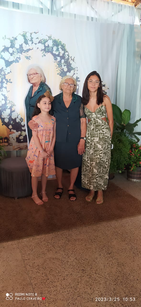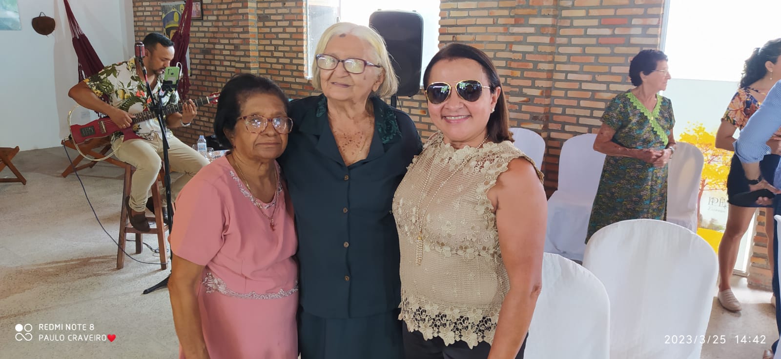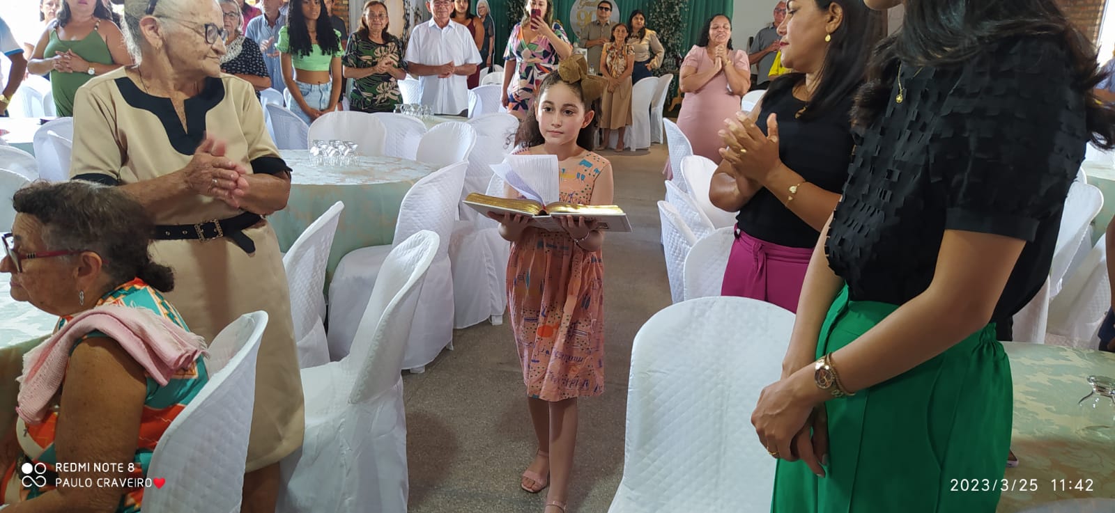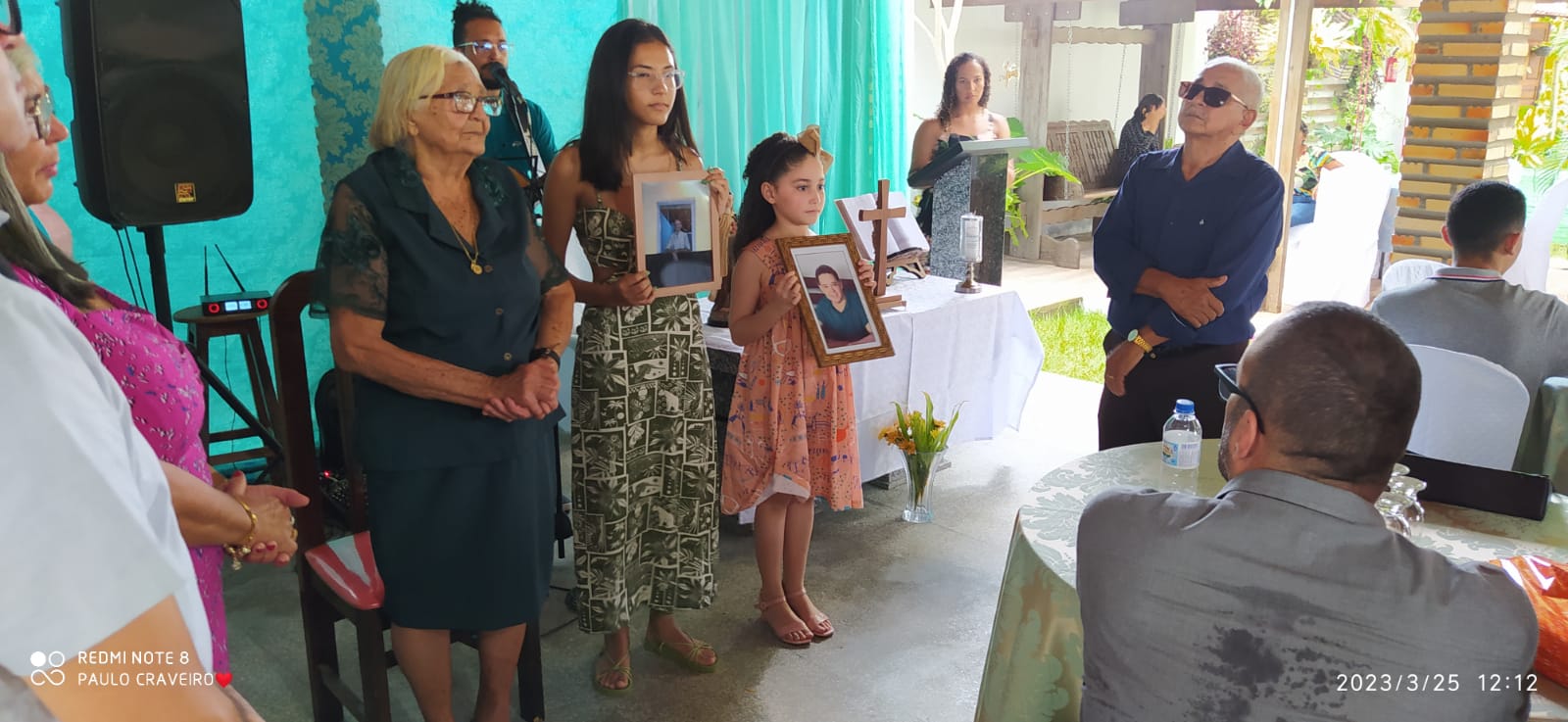 A Senhora Teresinha Holanda recebeu cada momento com muita alegria e emoção. A netinha Clara adentrou com a Bíblia Sagrada e em outro momento ao lado de Ingredy Mariana com foto de familiares in memoriam que deixaram muita saudade.