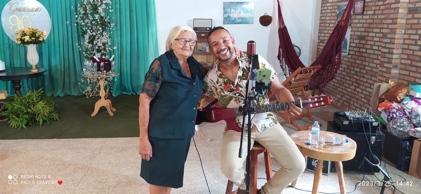 Sra. Teresinha recebeu todos seus convidados com muita alegria e satisfação, transformando este momento de comemoração em pura felicidade. Todo momento de comemoração teve a animação do cantor Bolica, o qual colocou em seu repertório musicas que marcaram época. Os familiares compareceram com a grande alegria de abraçar e parabenizar Sra. Teresinha por este inesquecível momento.