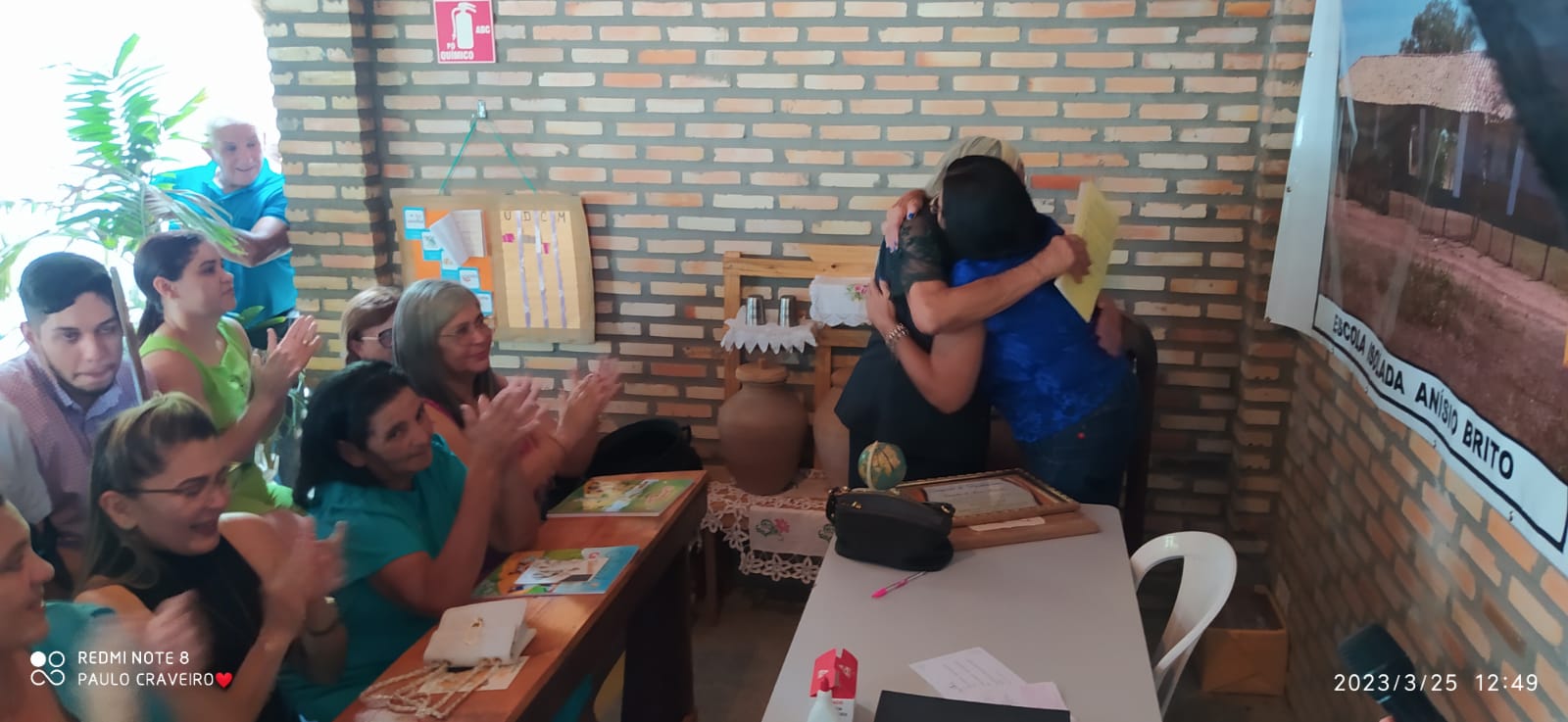 A emoção tomou conta da Senhora Teresinha ao reviver momentos que ainda hoje continuam vivos em sua memoria.Os filhos todos participaram deste momento que marcou muito na vida de todos. A filha Amparo Holanda fez entrega de um certificado, já em quadro para homenagear a professora Teresinha pelo importante trabalho em educação que realizou em sua vida. (Momento de muita emoção).