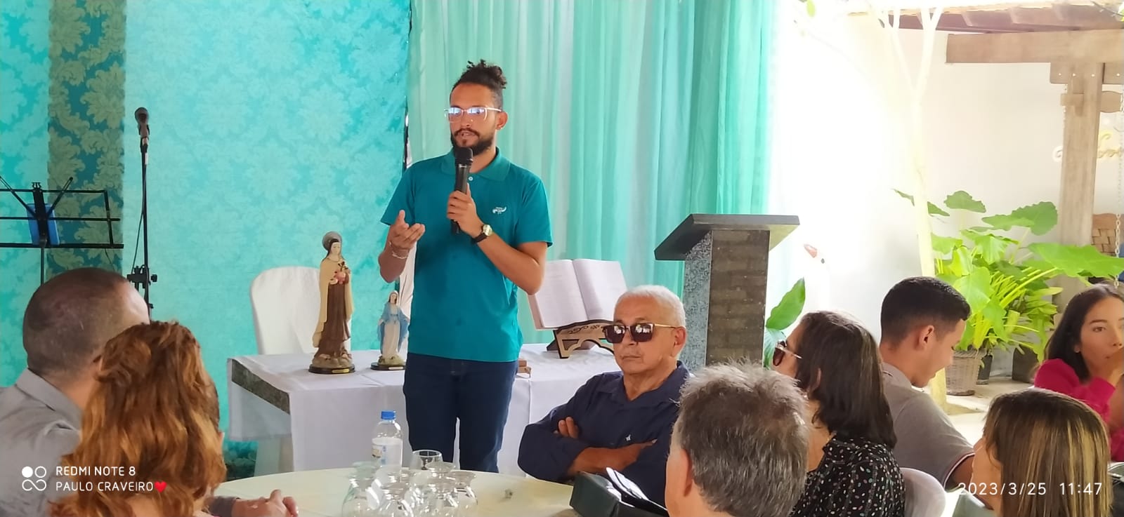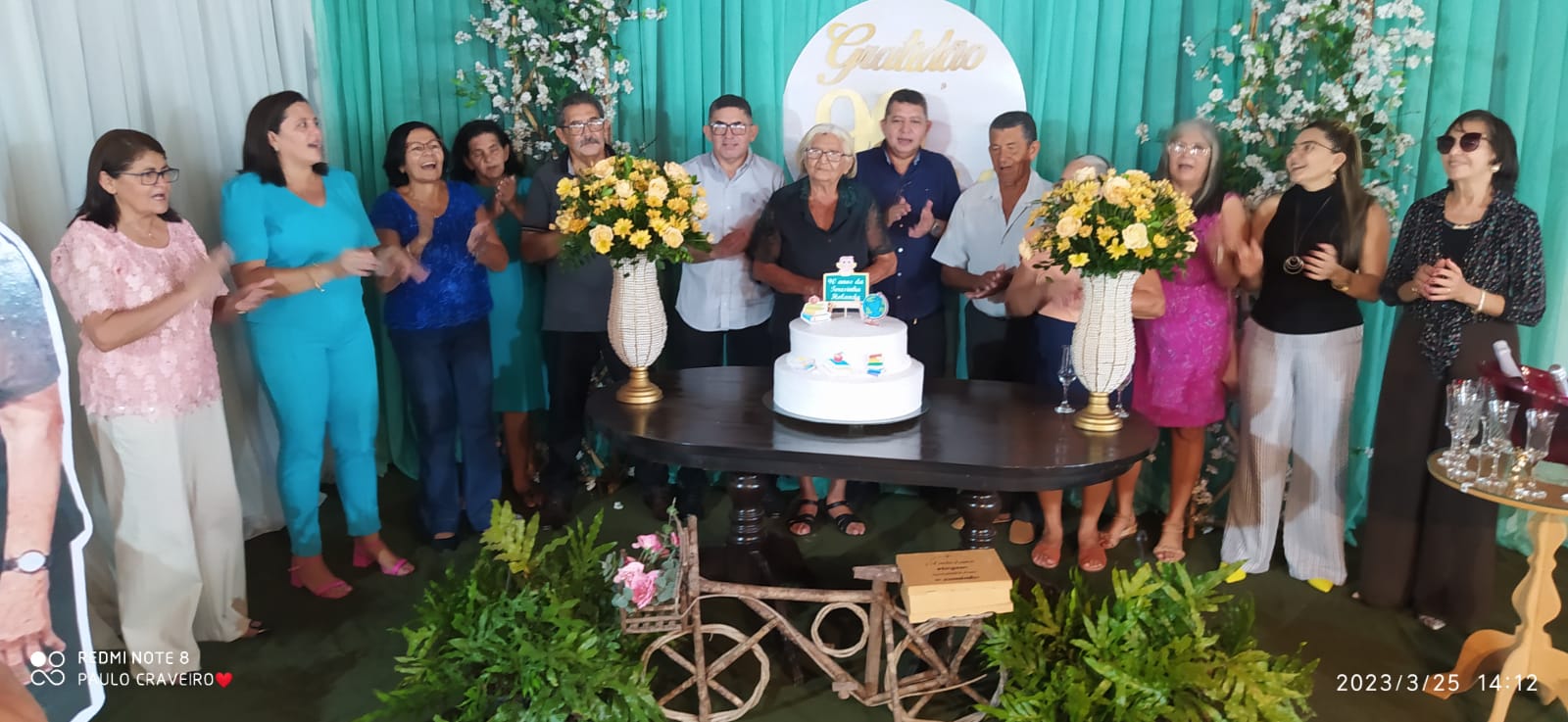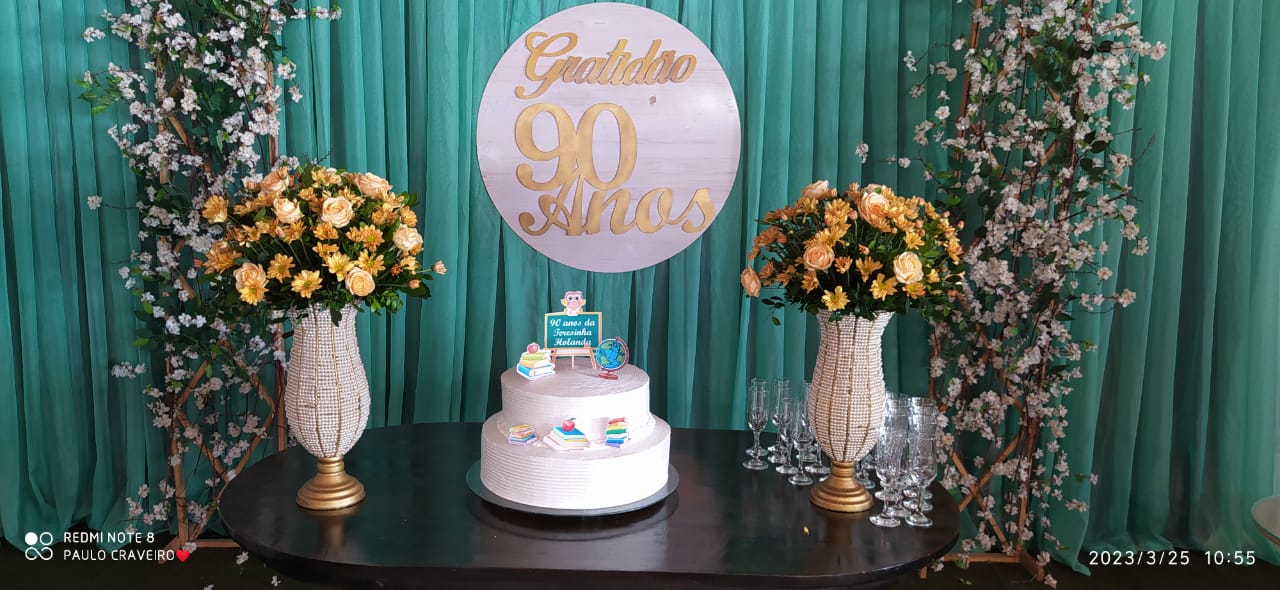 A comemoração dos 90 anos da Senhora Teresinha Holanda aconteceu no Ipês Eventos, no centro da cidade de José de Freitas-PI, no último sábado dia 25 de março de 2023 e teve inicio com a celebração da palavra. Raul Felipe membro de grupo religioso católico da Igreja de Nossa Senhora do Livramento foi quem articulou toda dinâmica da celebração, entre canto, leitura e reflexão da palavra de Deus proferida no momento e auxiliado por Tamires.