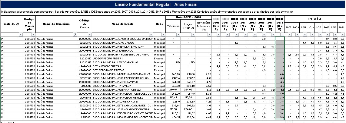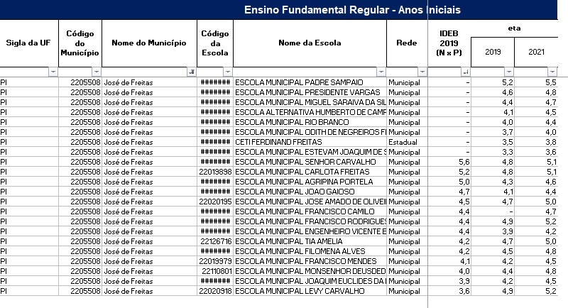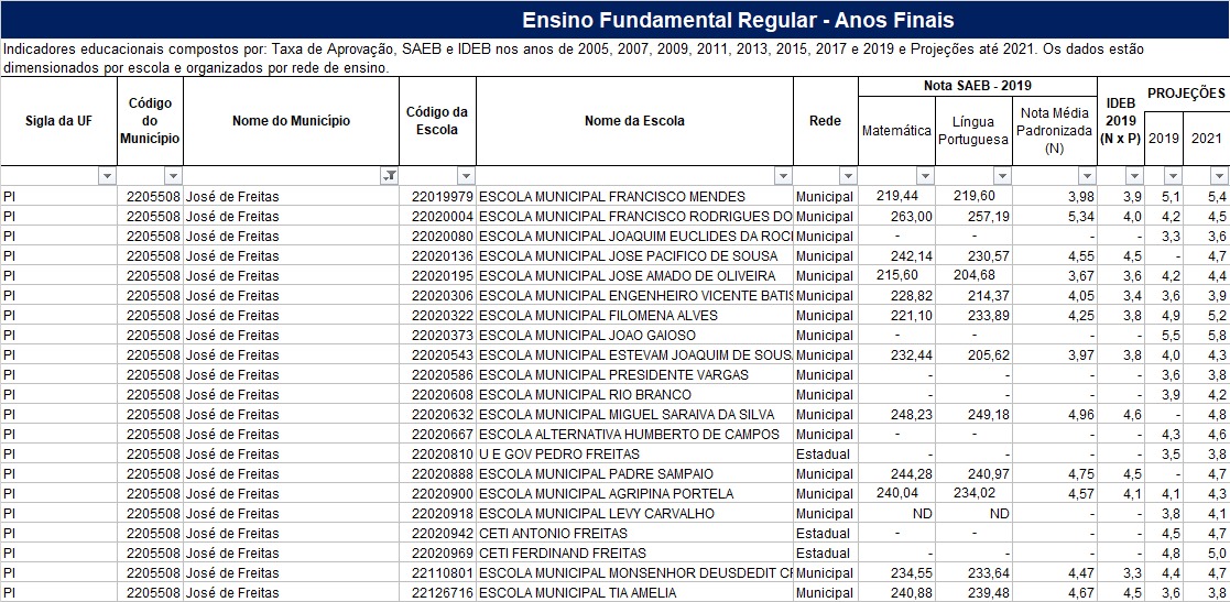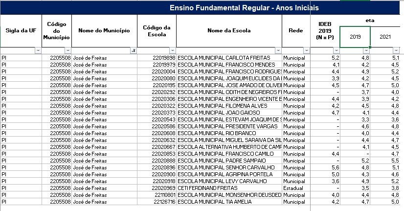 Resultado por Escola no Município de José de Freitas-PI.