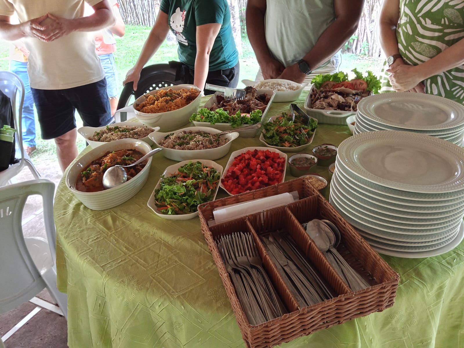 Um momento especial de oração reuniu todos em sintonia de fé e esperança. Rezou-se pelas famílias, pelo trabalho, pela saúde e pela missão que cada um cumpre aqui na terra. Após essa comunhão espiritual, foi servido um delicioso almoço com comidas típicas e naturais da região, seguido por irresistíveis sobremesas. Antes disso, os convidados já haviam sido recebidos com tira-gostos variados, como torresmo, dobradinha, batata frita e outras delícias.