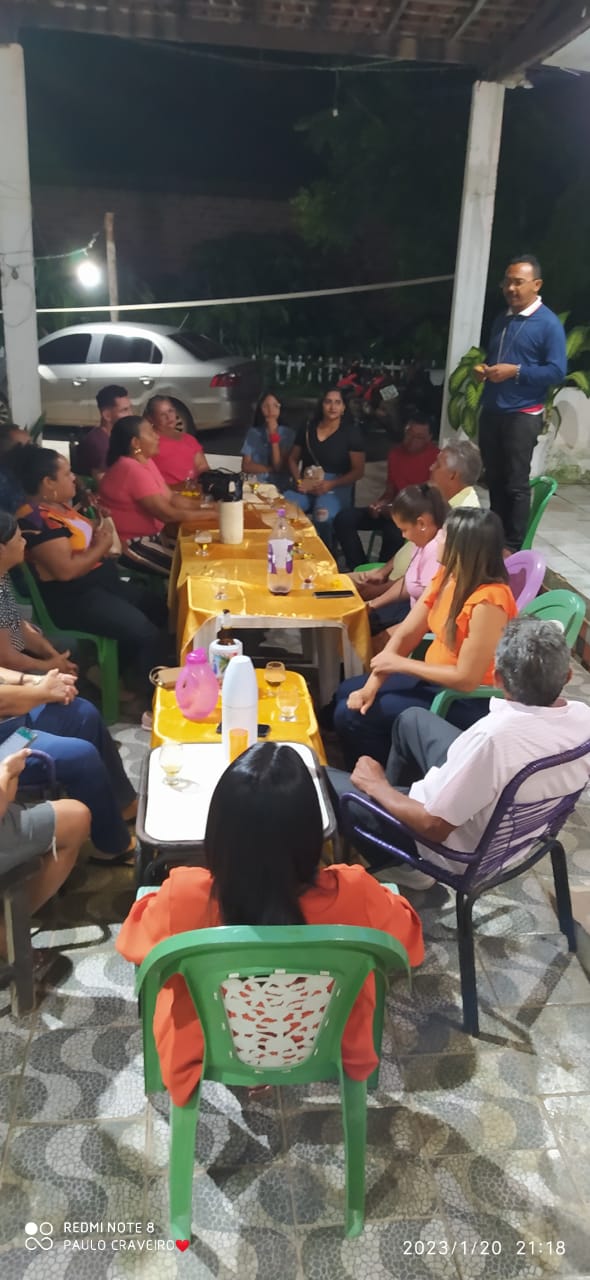 Durante o encontro foram discutidas assuntos voltados para a melhoria logística do grupo. Vários assuntos alegres e descontraído foram abordados, a cantora Mentinha Alves fez uma participação musical para animar o momento.Com a colaboração de todos foi servido um farto jantar.
