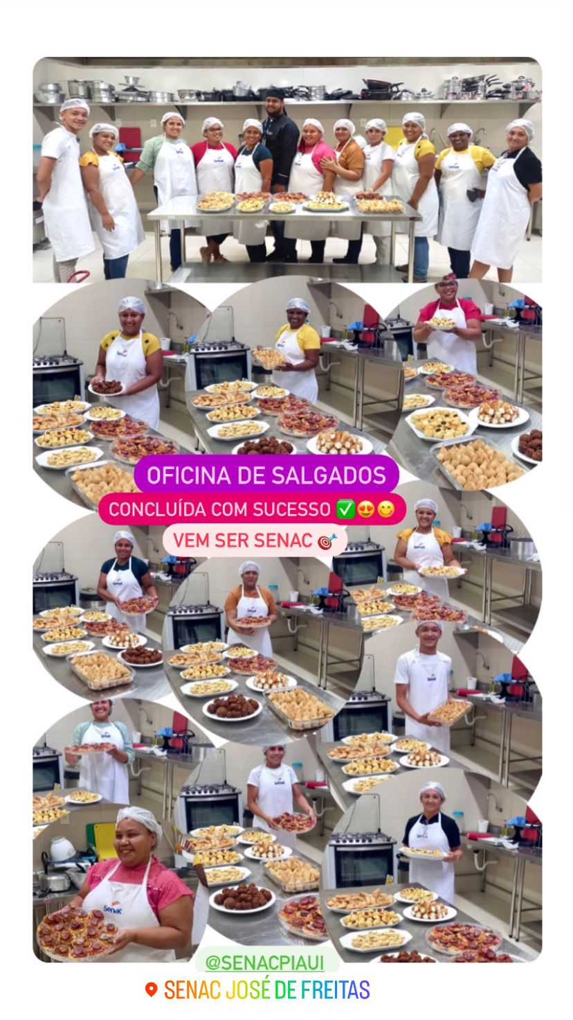 Cláudia Freitas, que é apoio à gerência, juntamente com John Santos apoio Pedagógico e o chef Erick Vinicius organizaram este curso de salgados, onde contou com 11 participantes sendo na maioria mulheres e apenas um homem participou do curso.O curso aconteceu durante todo dia de sábado (21), com encerramento no final do dia.