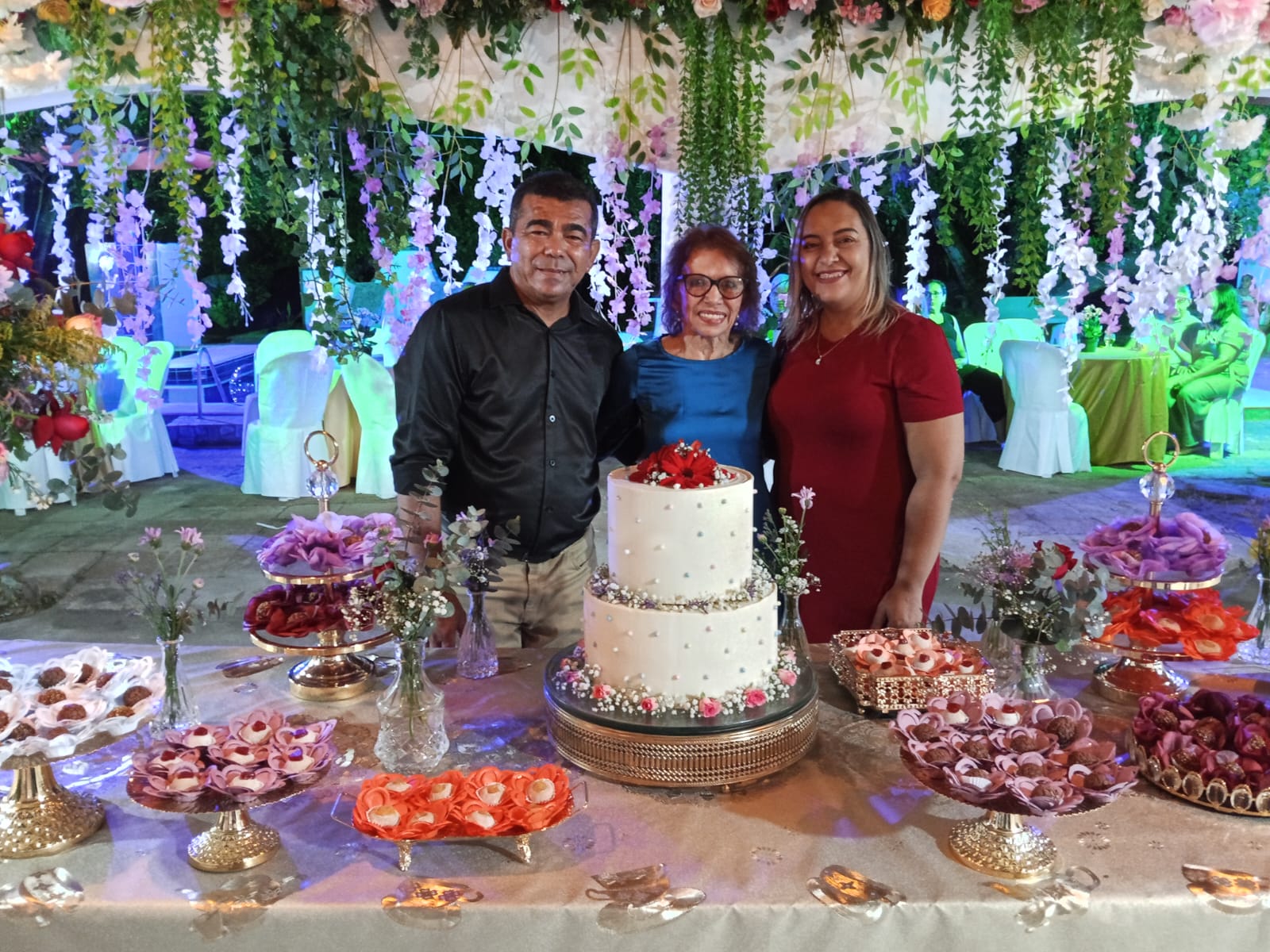 A noite foi super agradável, sob um céu estrelado e limpo, a fazenda “Nova Jerusalém II” se transformava num cenário mágico de celebração. Na delicadeza das flores. No dourado dos Ipês em flores silvestres, um colorido cintilante se entrelaçava com o brilho das luzes, azuis e amarelas, um brilho dourado e suave sobre os rostos sorridentes dos convidados, foi tudo assim lindo e mágico.