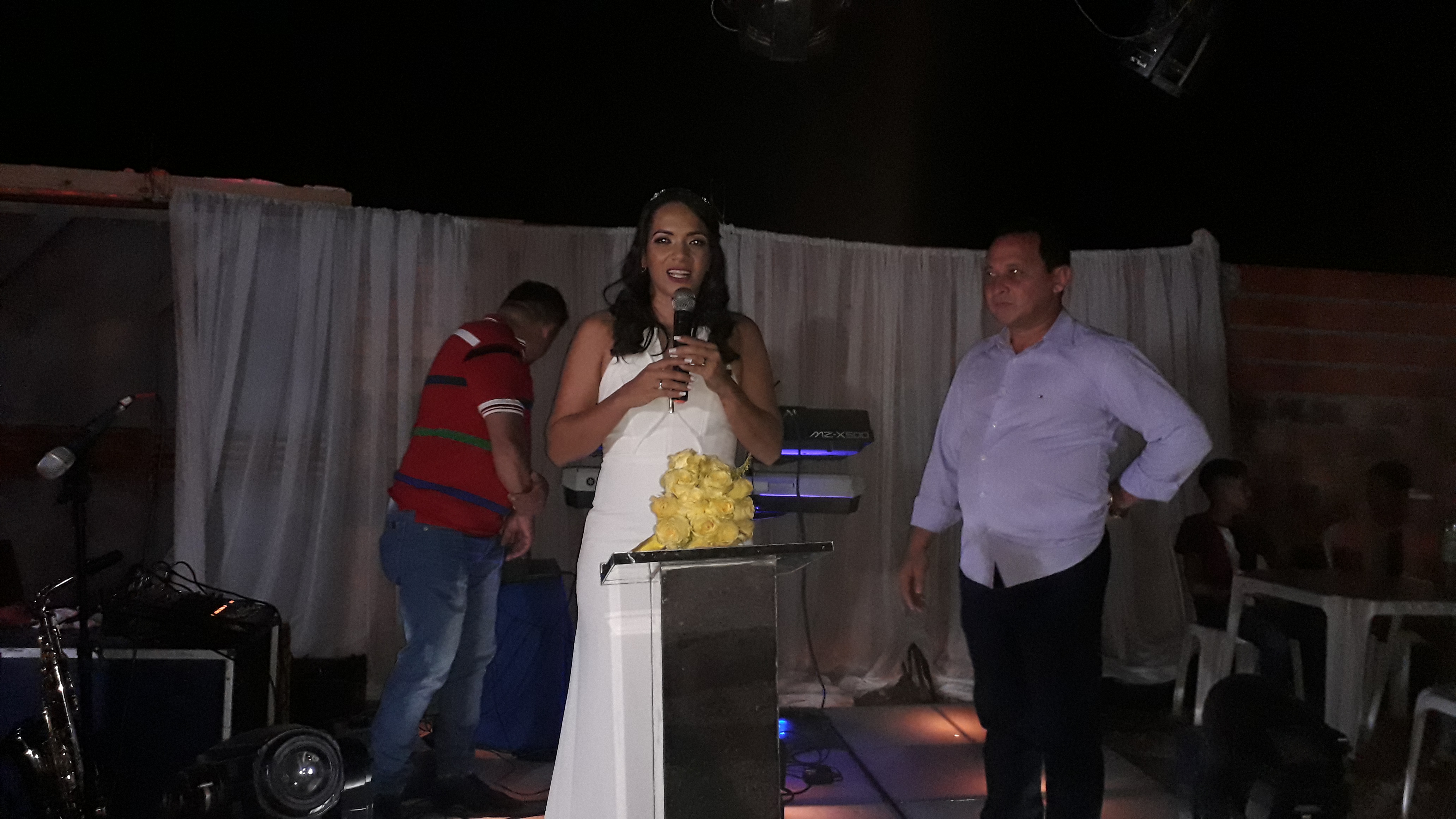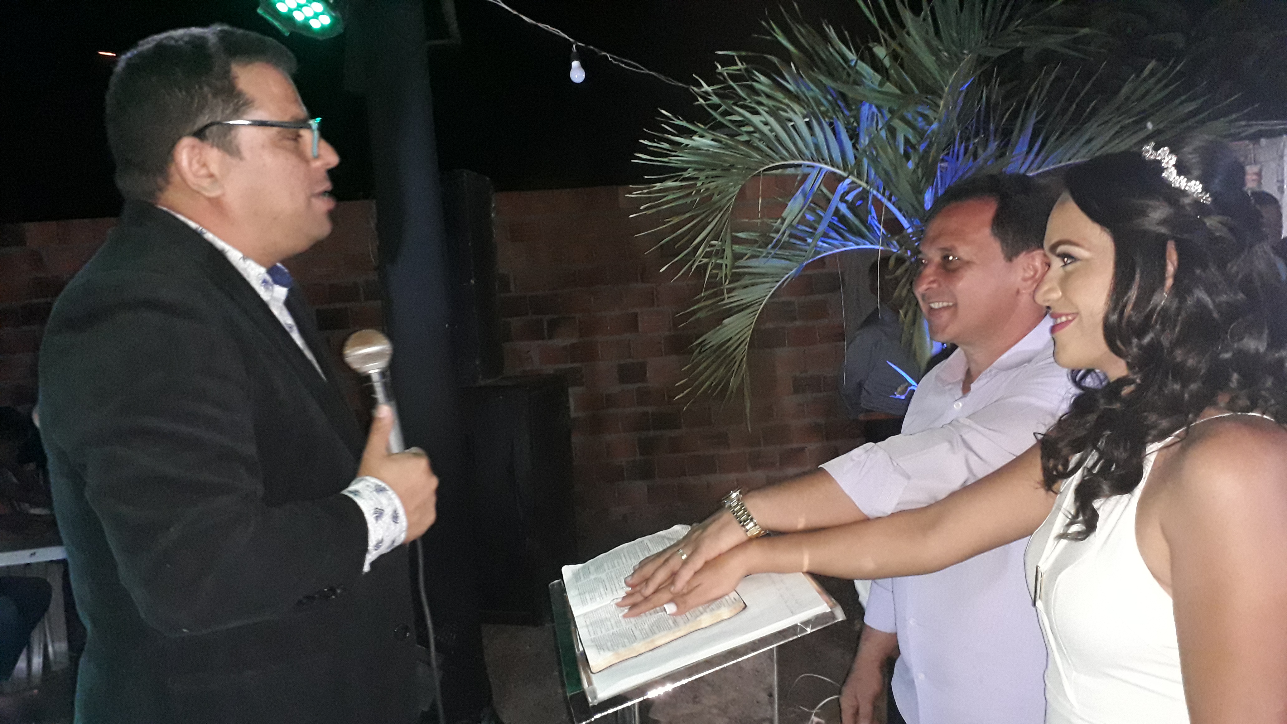 O Pastor Edvan Nogueira fez uma oração para iluminar os noivos, em seguida fez a benção do casal. Depois de algumas leituras da Bíblia e palavras de união o Pastor finalizou abençoando os noivos que se tornaram casados e assim Deus os abençoou.