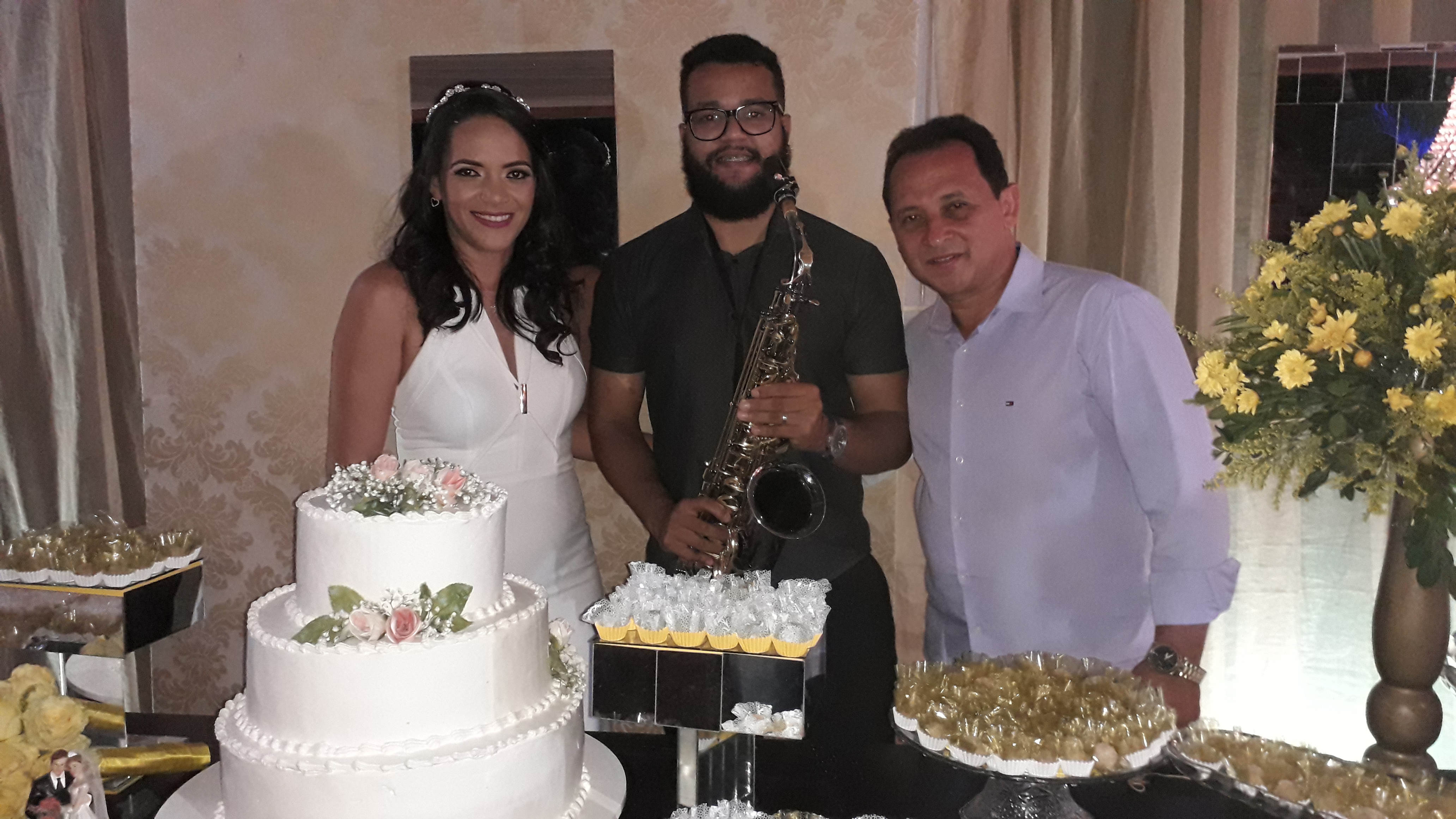 Todos ritos do enlace matrimonial de Andreia e Roberto foram acompanhados e animados pelo saxofonista Rivelino, que abrilhantou o recinto com várias melodias de seu sax.