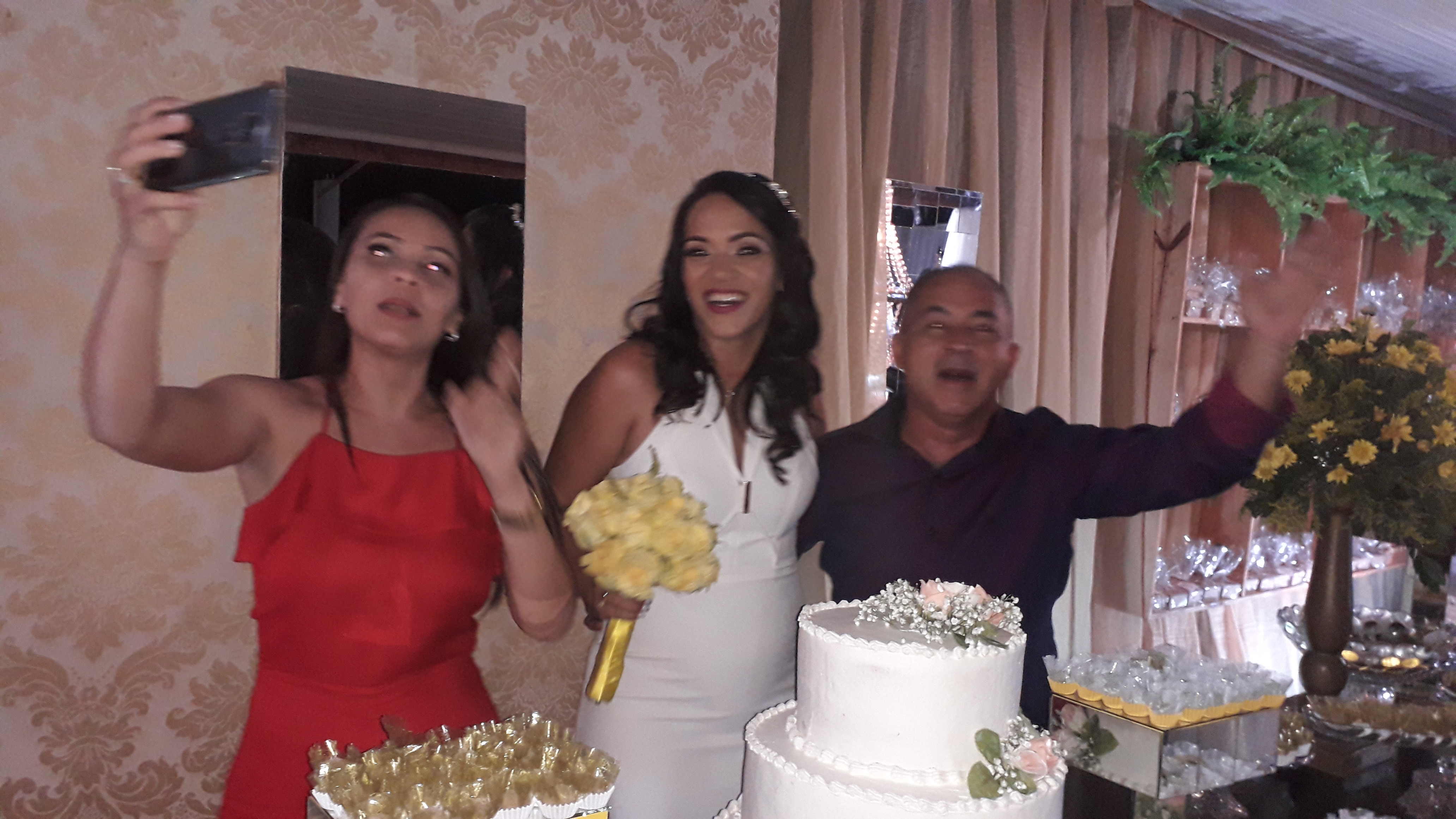 Na saída dos recém-casados teve Chuva de Arroz, aconteceu a dança dos recém-casados, também o brinde e um dos momentos esperado, o momento de jogar o buquê.