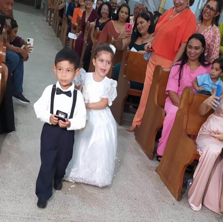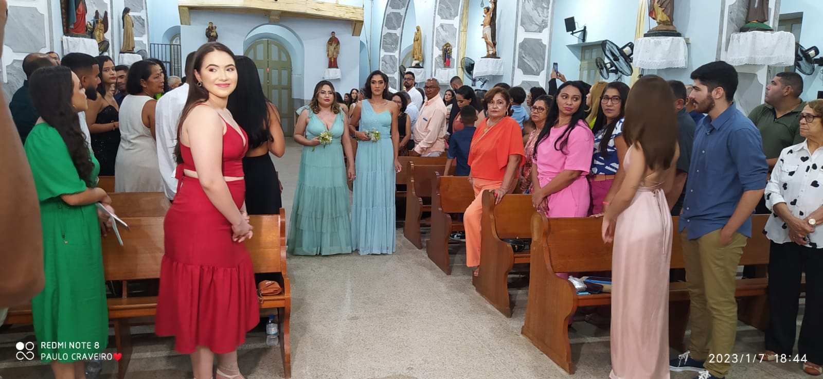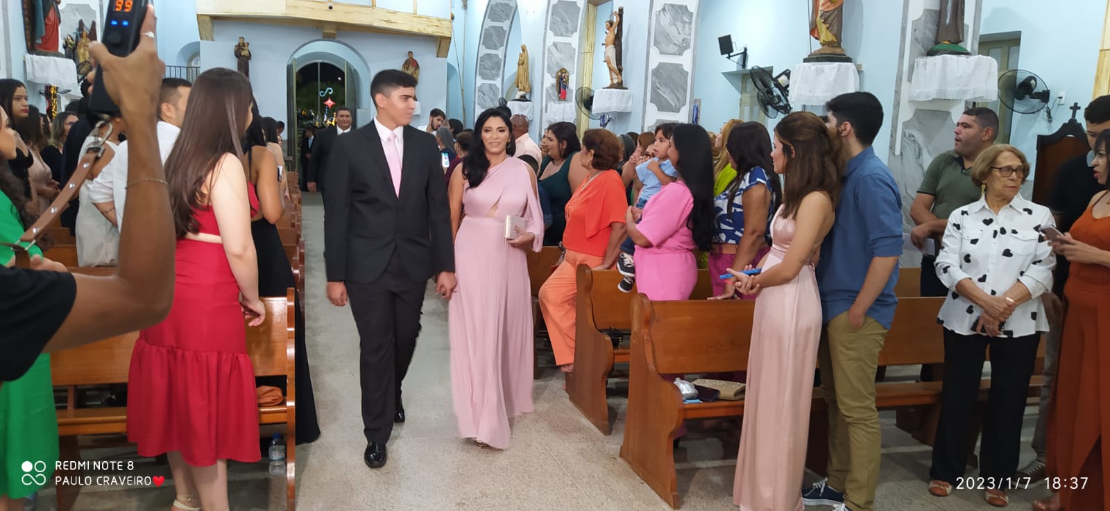 O momento mais aguardado foi a entrada da noiva, Maria Clara Alves Craveiro, onde a mesma veio acompanhada de seus avós Francisco das Chagas e Maria do Amparo.