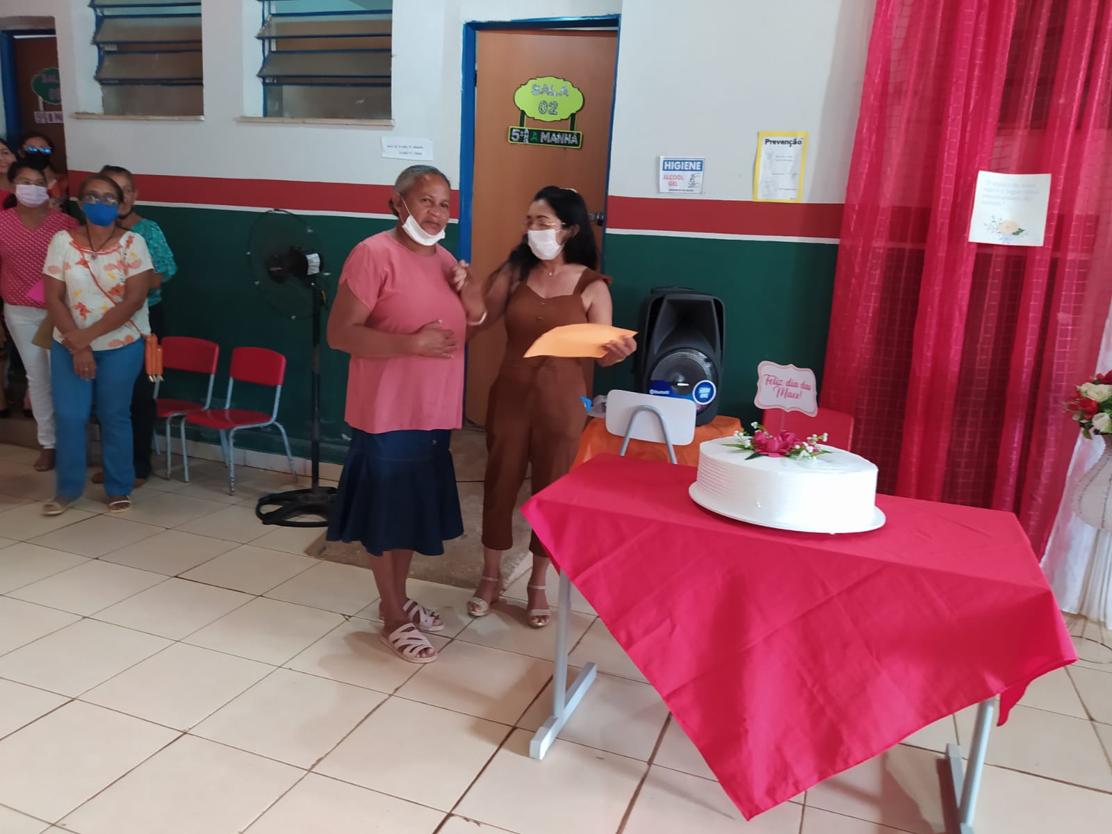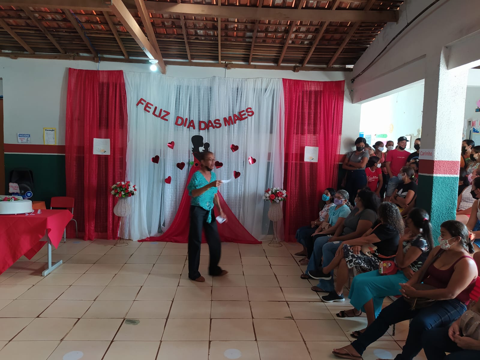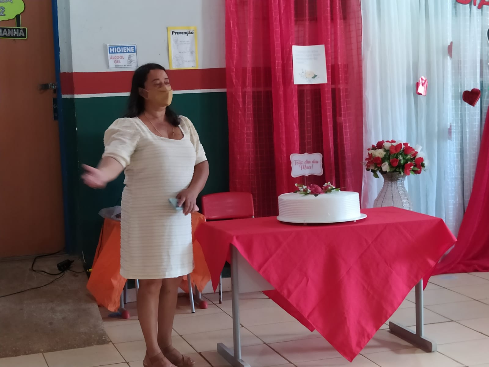 A Professora Cleonice realizou algumas dinâmicas com as mães presentes, proporcionando um momento de descontração e interação com mães.Algumas mães deram seu depoimento de vida, como a mãe Margarete que contou um pouco de sua história com seus filhos.