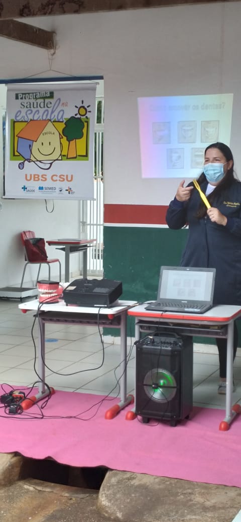 Terça-feira dia 9 de novembro de 2021  a Escola Municipal Antônio Gaioso, zona urbana do município recebeu a equipe da UBS CSU com o Programa Saúde na Escola,onde foram ministradas palestras pelo Enfermeiro Marcos que falou sobre alimentação saudável e a Dentista Gabriela que falou sobre os cuidados da higiene bucal para crianças e os Pais que se fizeram presentes nessa manhã de terça-feira.Logo após as palestras, a equipe dos ACS ( Agente Comunitário de Saúde) fizeram a conferência do cartão de vacina, peso e medida das crianças.Os mesmos orientaram aos pais em relação as vacinas atrasadas e pediram que procurassem seu posto para atualização das vacinas. A Escola agradeceu a colaboração de todos.