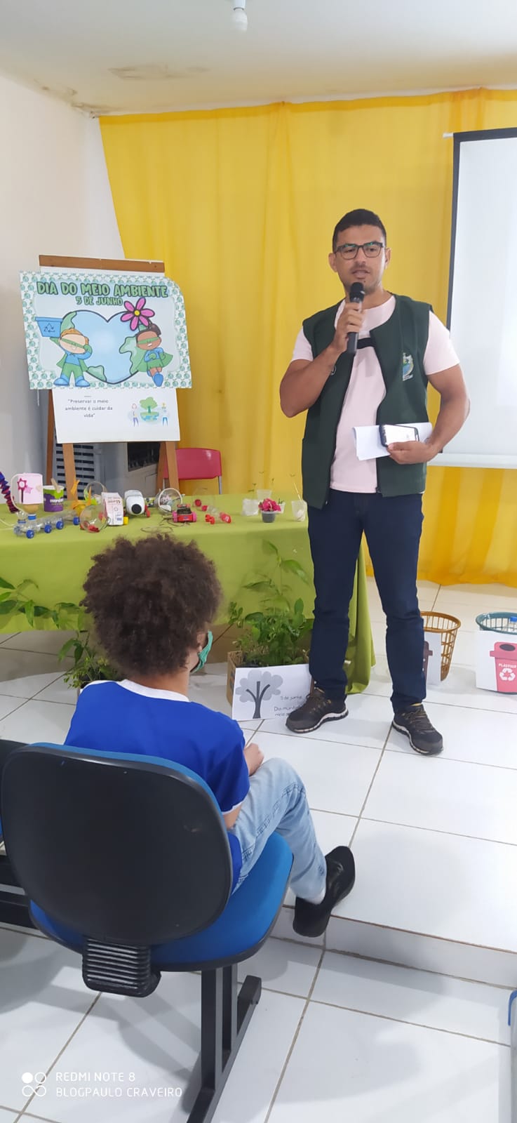 O Técnico da SEMAT Maurilio ao falar com os alunos sobre meio ambiente, os questionou sobre o mesmo e os alunos se manifestaram para falar sobre a preservação do meio ambiente. Durante a semana de atividades do projeto os alunos trabalharam os recicláveis e construiram vários brinquedos e objetos com os recicláveis.