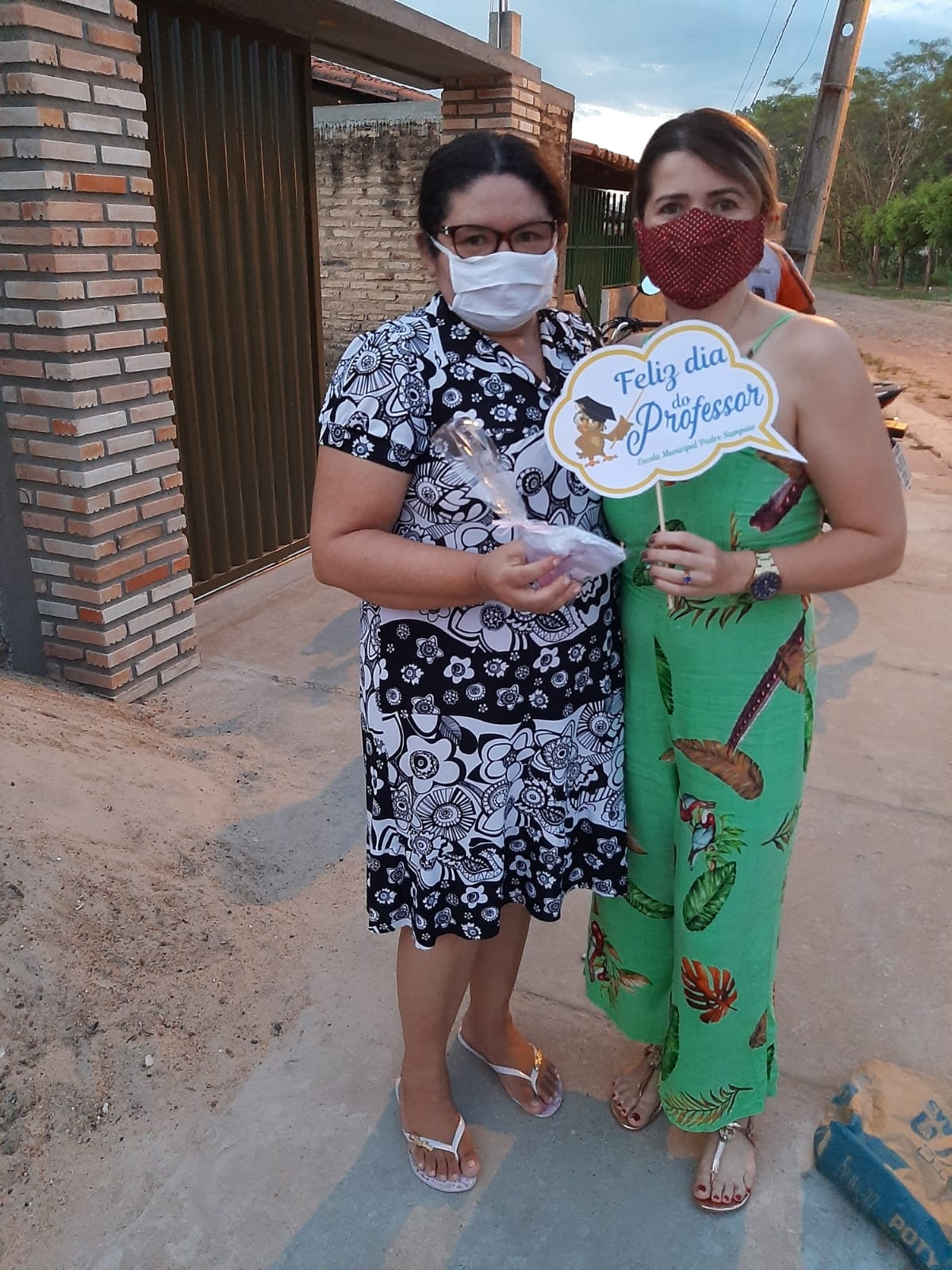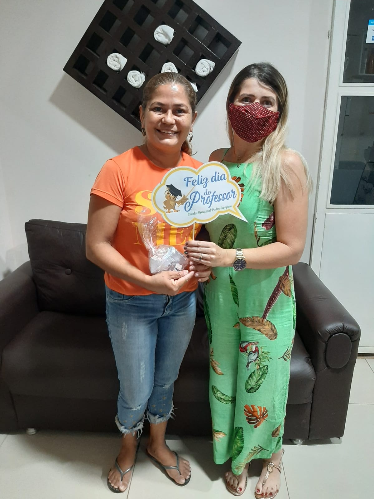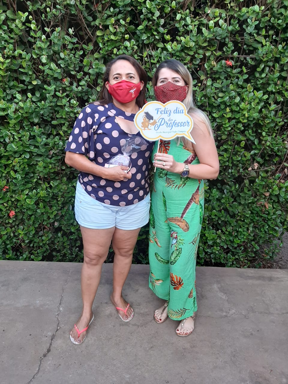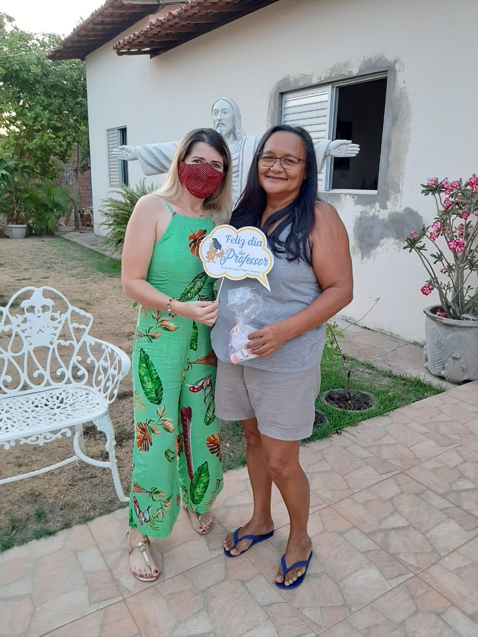 A diretora Jeana junto com a coordenadora Verônica Veras, não mediram esforços e se dispuseram à visitar os professores em seus residencias para entrega de lembrança supresa e agracio-lo pelo seu dia.