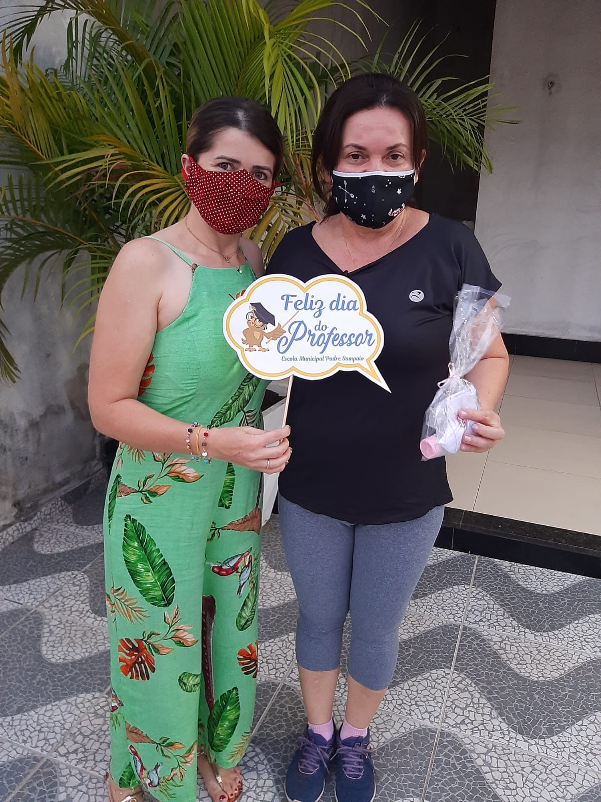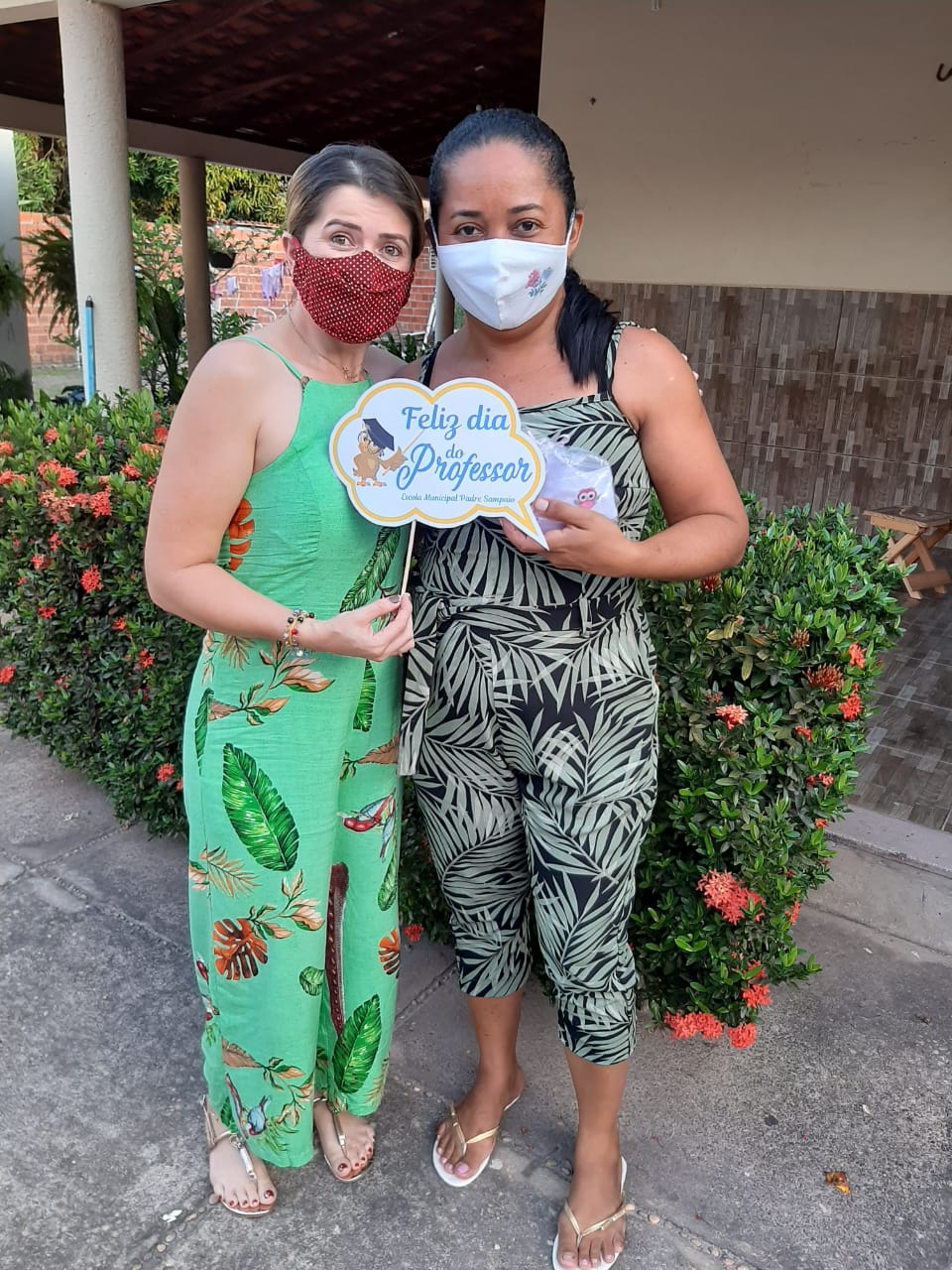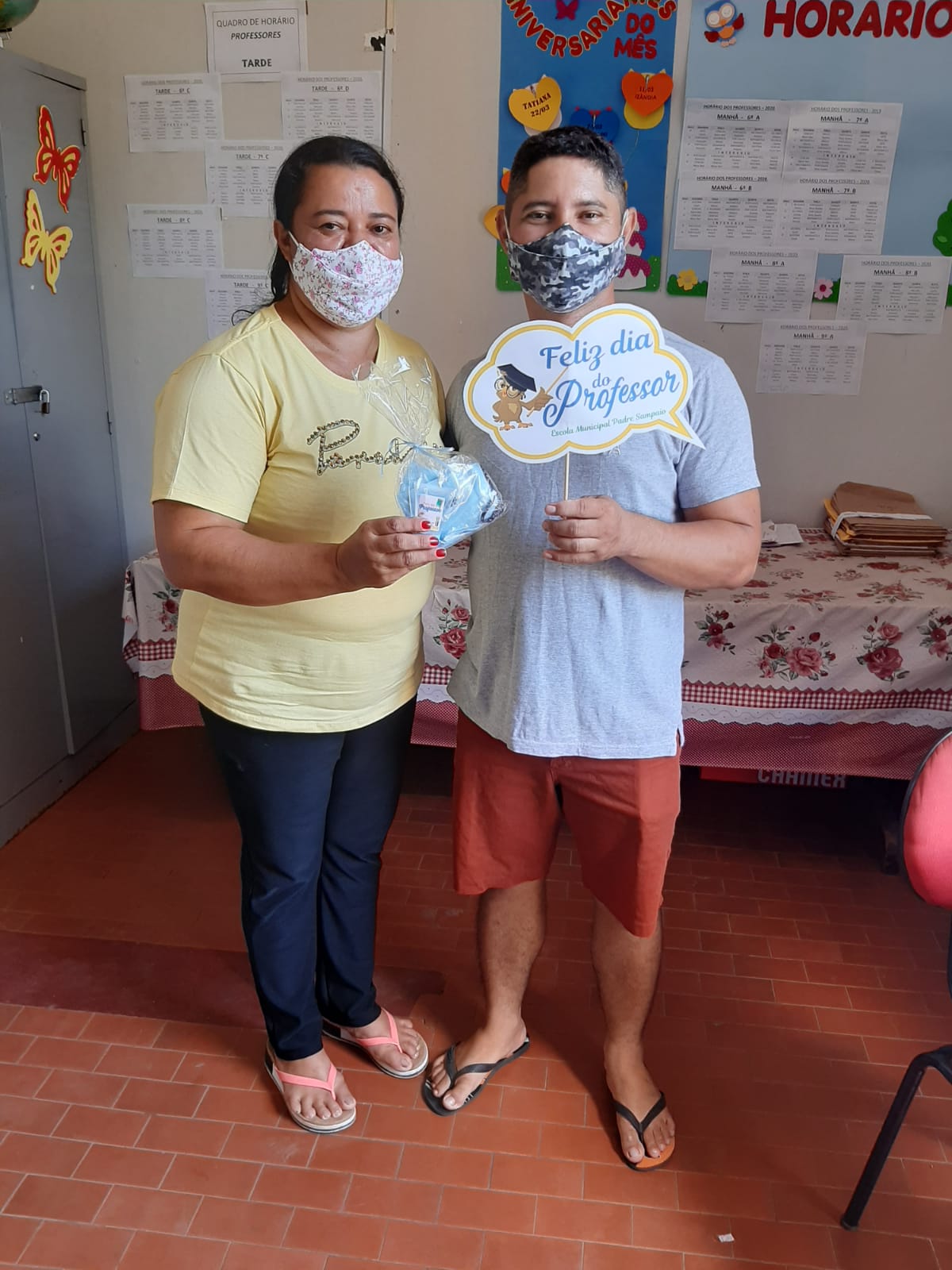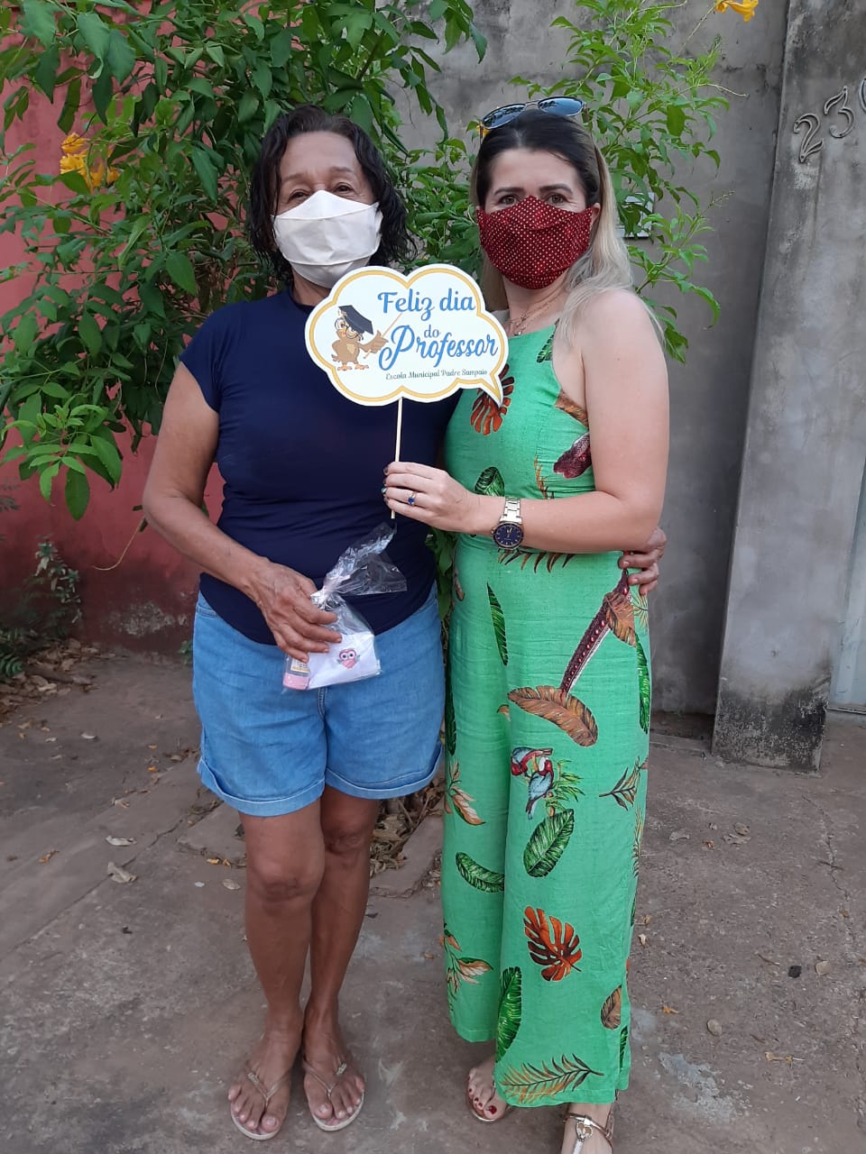 A diretora Jeana junto com a coordenadora Verônica Veras, não mediram esforços e se dispuseram à visitar os professores em seus residencias para entrega de lembrança supresa e agracio-lo pelo seu dia.