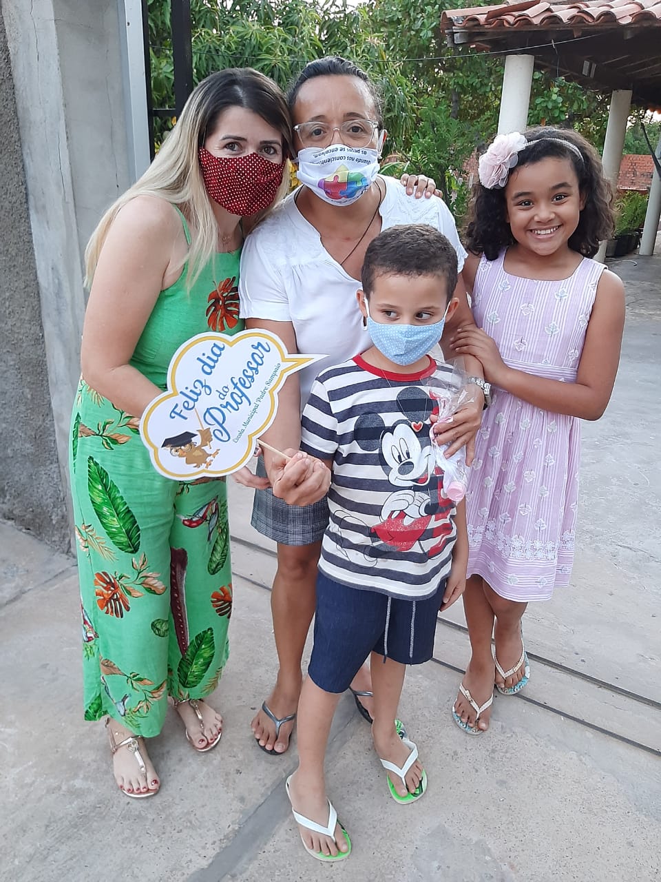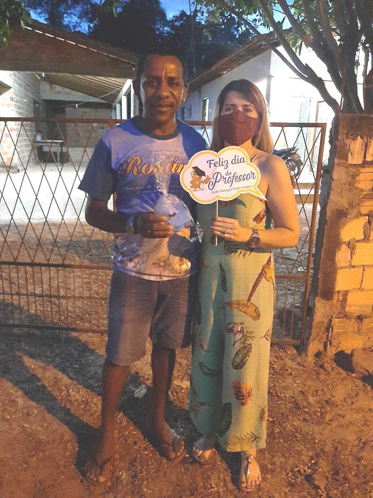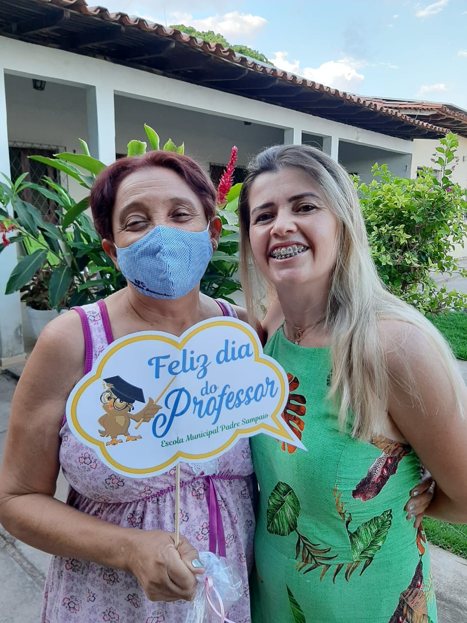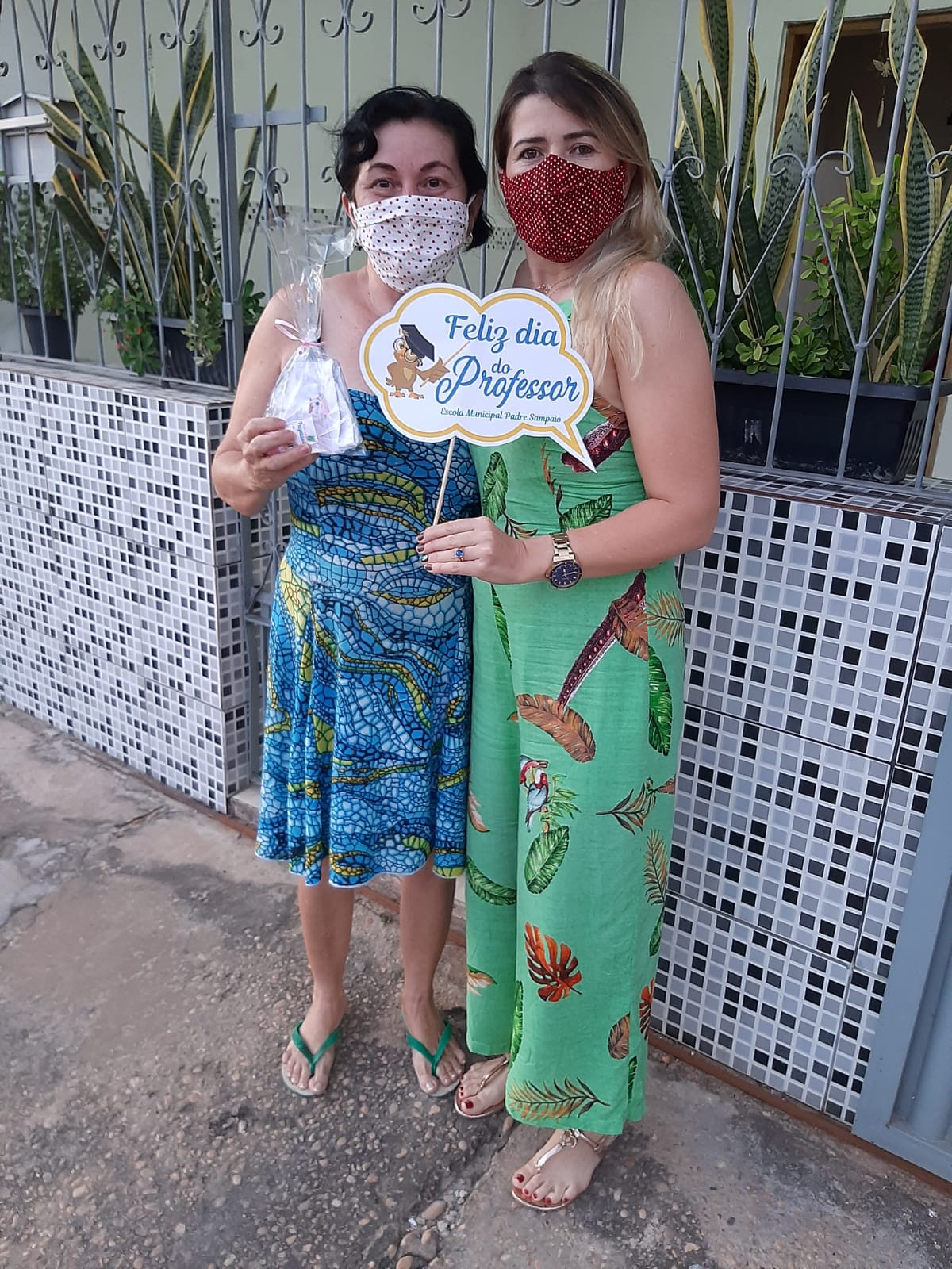 A diretora Jeana junto com a coordenadora Verônica Veras, não mediram esforços e se dispuseram à visitar os professores em seus residencias para entrega de lembrança supresa e agracio-lo pelo seu dia.
