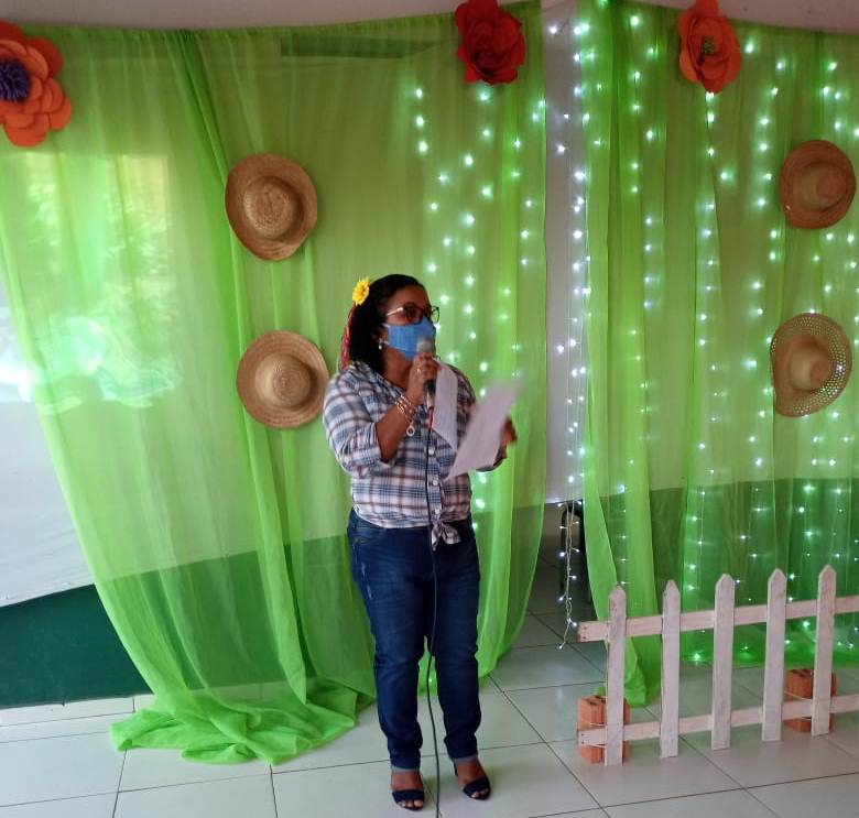 Professora Cleonice fez a apresentação de todo contexto do projeto, apresentando cada personagem com suas especificações no “Arraiá dos Bichos Leitores”.