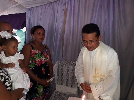Batizado de Maria Cecilia dos Santos Silva filha de: Rejane dos Santos Silva e José Francisco dos Santos Campos
