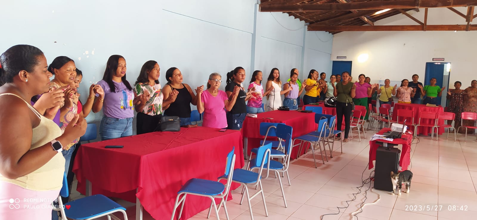 Toda equipe da escola interagindo em todos os momento, na organização de cada etapa planejada para homenagear as Mães que têm seus filhos na Escola Levy Carvalho