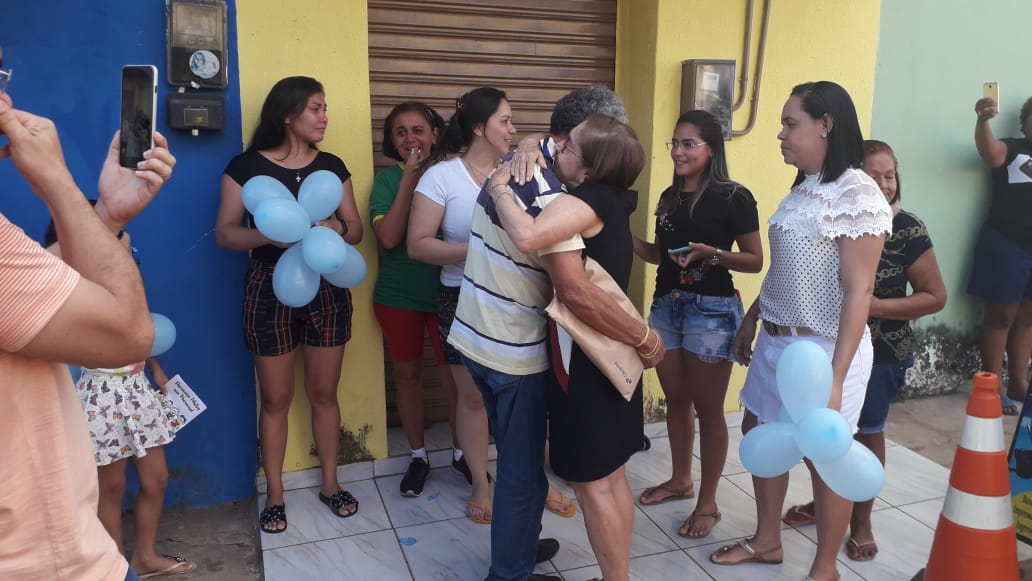 Salustiano Mendes foi recebido por todos, entre eles filhos, netos, mas em especial pela esposa Veralúcia Farias com um abraço caloroso, pois a mesma conhece o esforço que o marido fez durante todo esse tempo pela profissão e pela empresa.