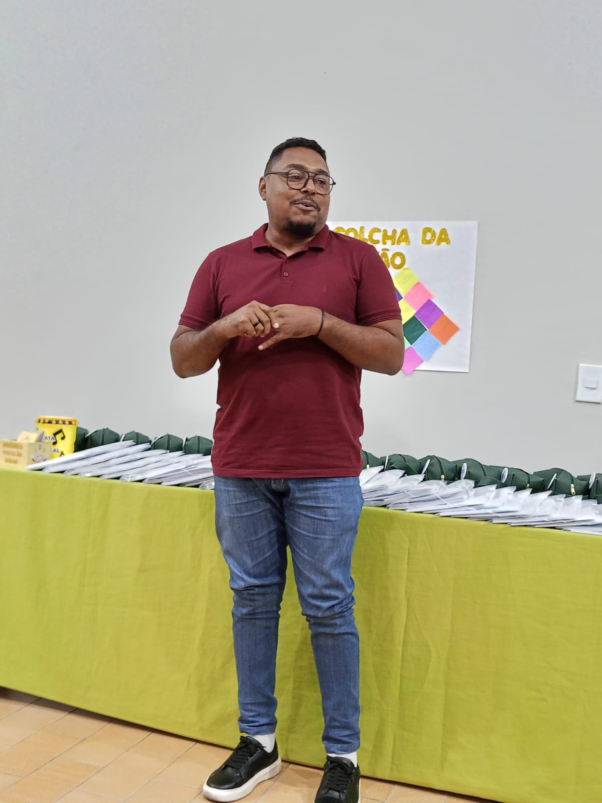 Logo na abertura, o professor Paulo Craveiro conduziu um acolhimento especial, recepcionando a todos com palavras de incentivo e fé. Em seguida, realizou uma bela oração, pedindo tranquilidade, paz, sabedoria e evolução para professores, alunos e toda a comunidade escolar, proporcionando um momento de reflexão e união entre os presentes.
