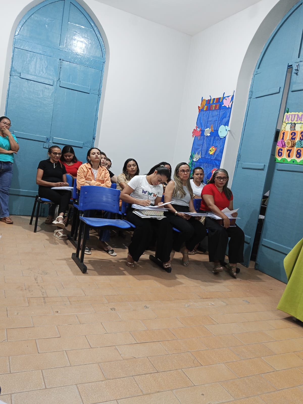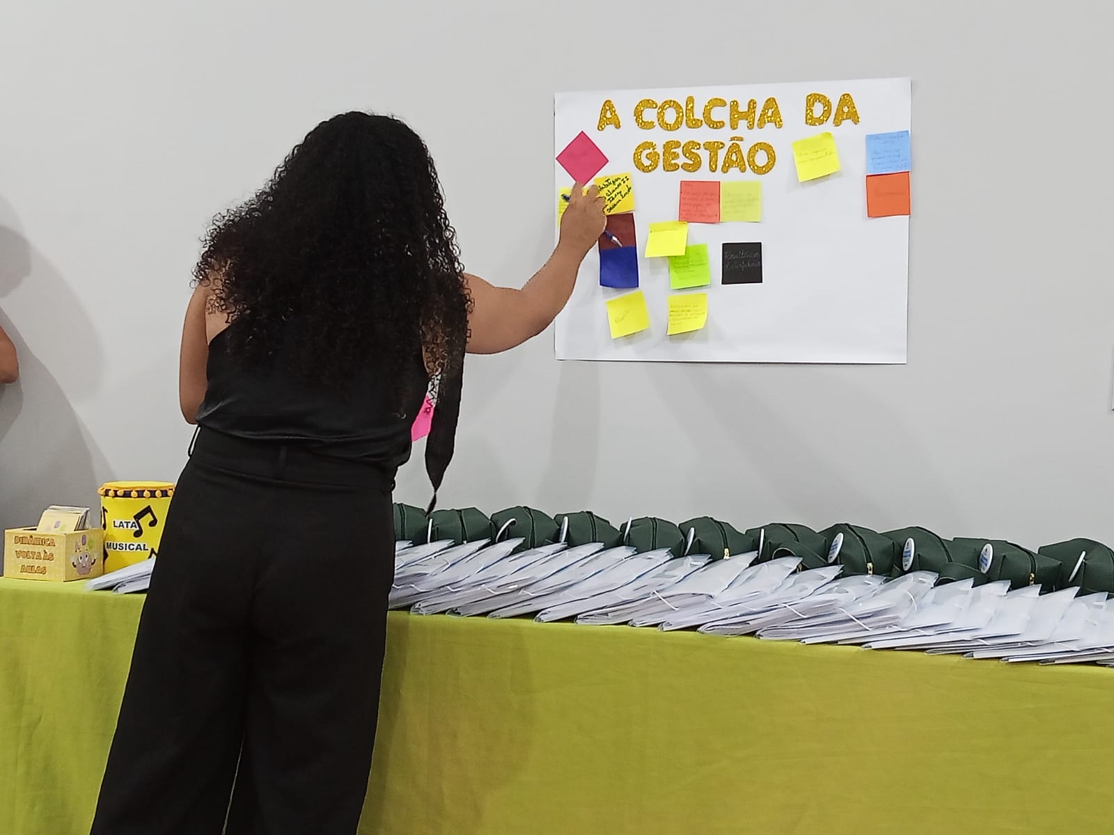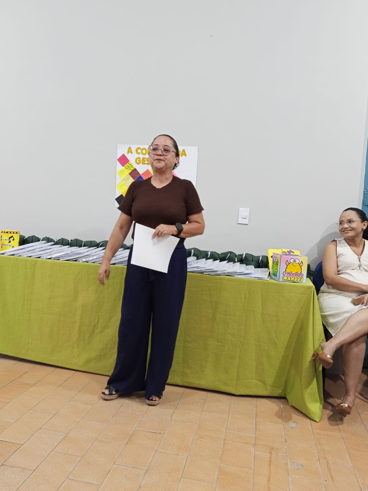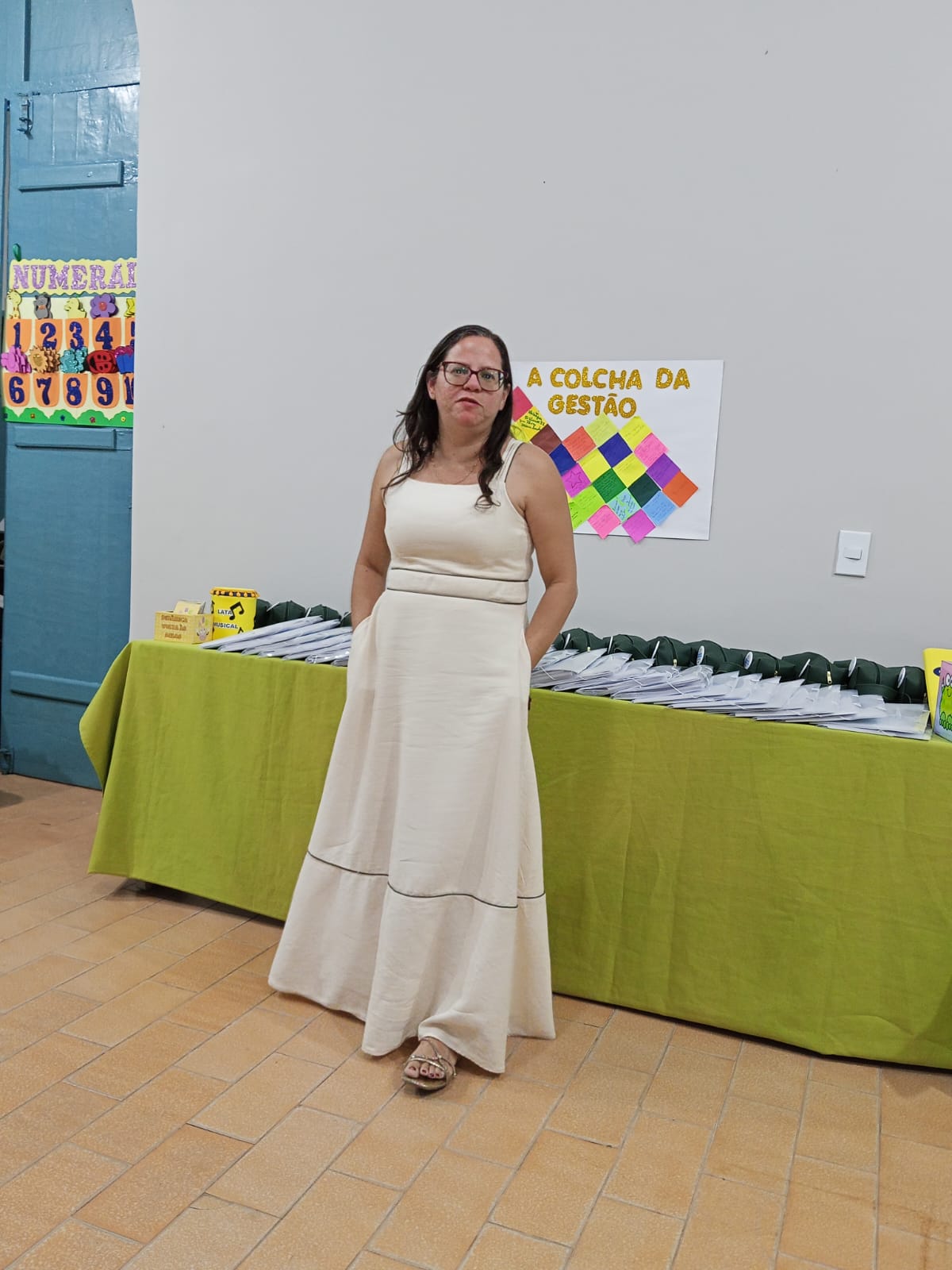 A Professora Socorro Cruz organizou uma dinâmica entre os presentes intitulada “Colcha da Gestão Escolar”, com a participação de coordenadoras e diretora das escolas Engenheiro Vicente Batista, Tia Amélia e Carlota Freitase. Uma oração de boas-vindas aos coordenadores, professores, aos envolvidos em educação.