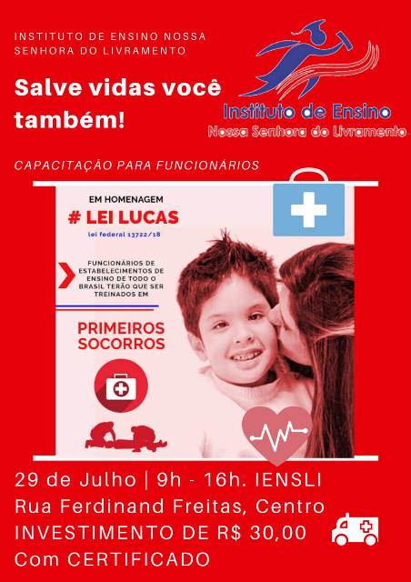 A Lei Lucas (13722/18) foi sancionada dia 04/10/2018. Ela obriga as escolas, públicas e privadas e espaços de recreação infantil a se prepararem para atendimentos de primeiros socorros.