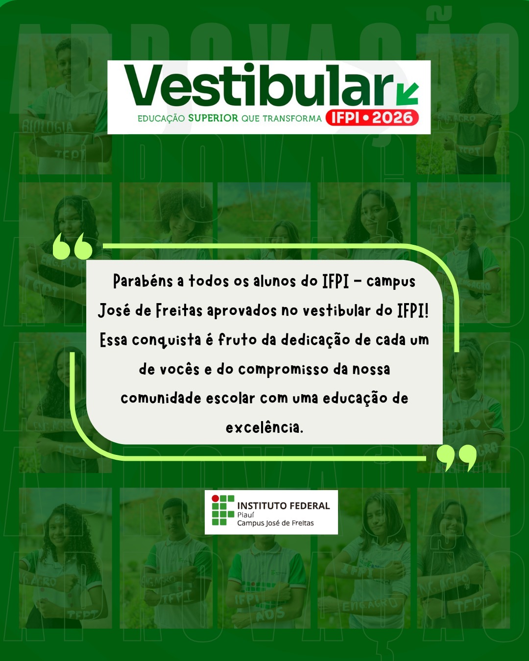 Campus José de Freitas parabeniza a todos os alunos aprovados no vestibular do IFPI!