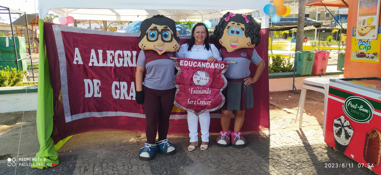 A Escola Santo Elias fez uma Ação Educativa ao lado da Igreja Matriz de Nossa Senhora do Livramento.