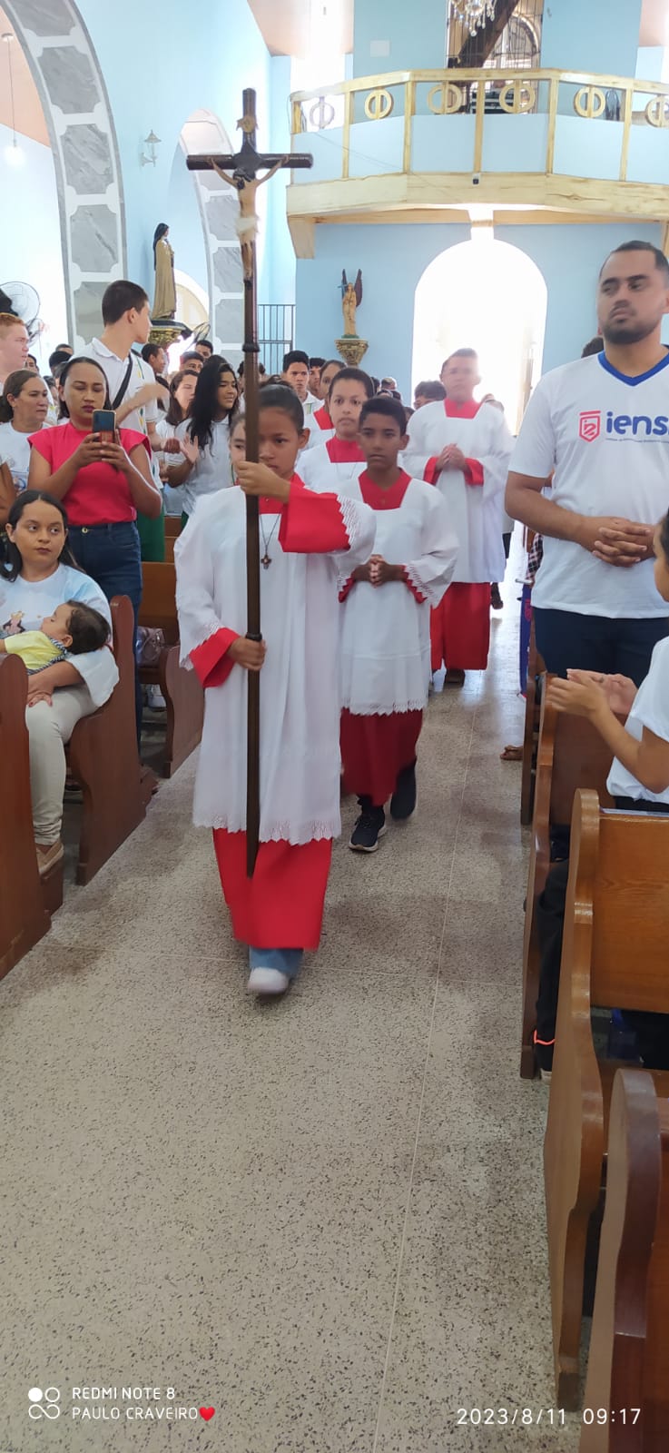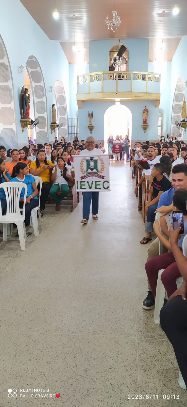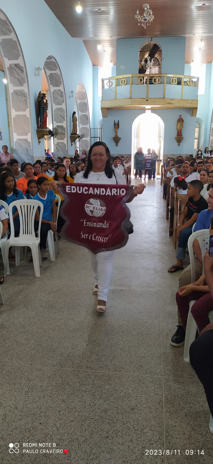 No inicio da missa teve a entrada das representatividades das entidades educacionais do município, tendo à frente os representantes da Secretaria de Educação seguidos por demais entidades de ensino do município. Por fim a equipe celebrativa.