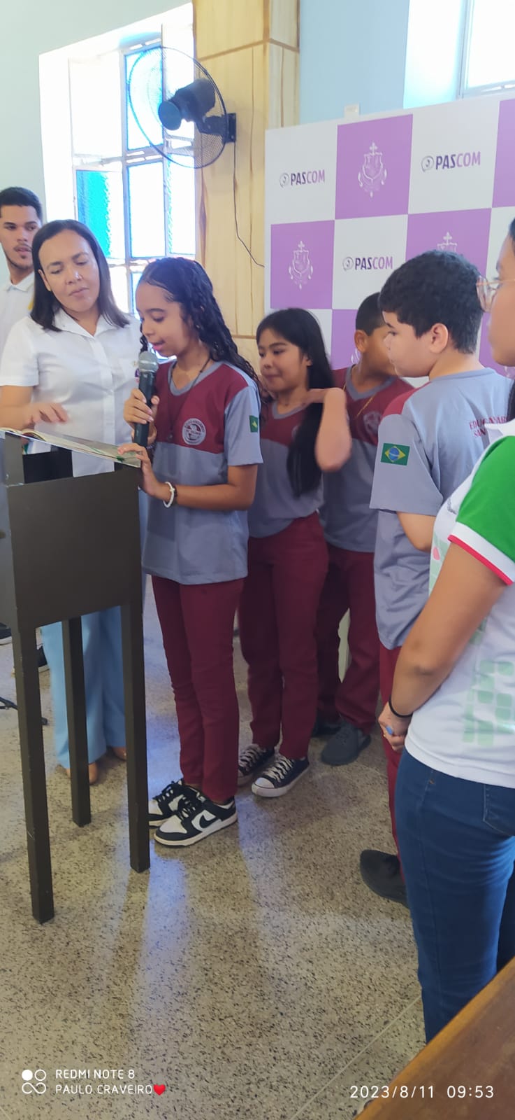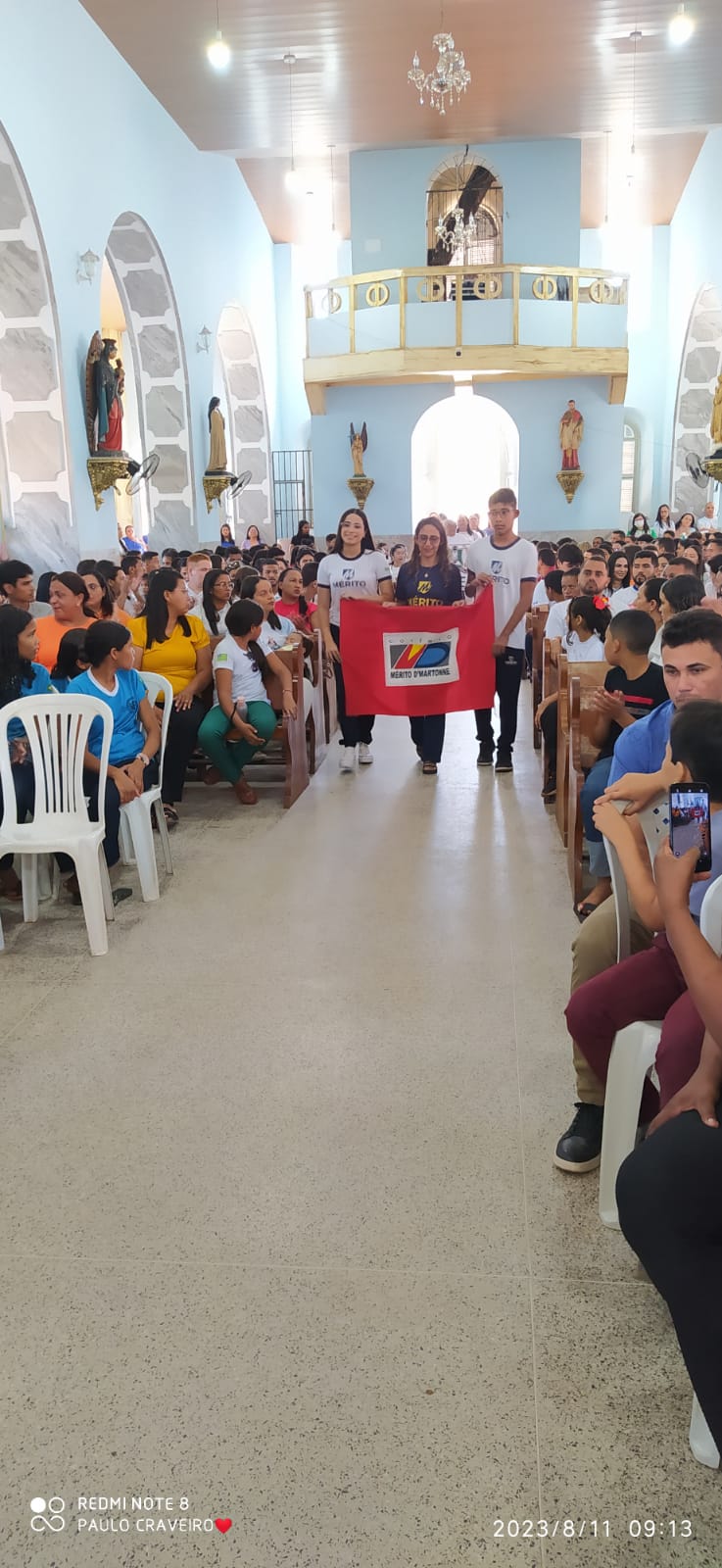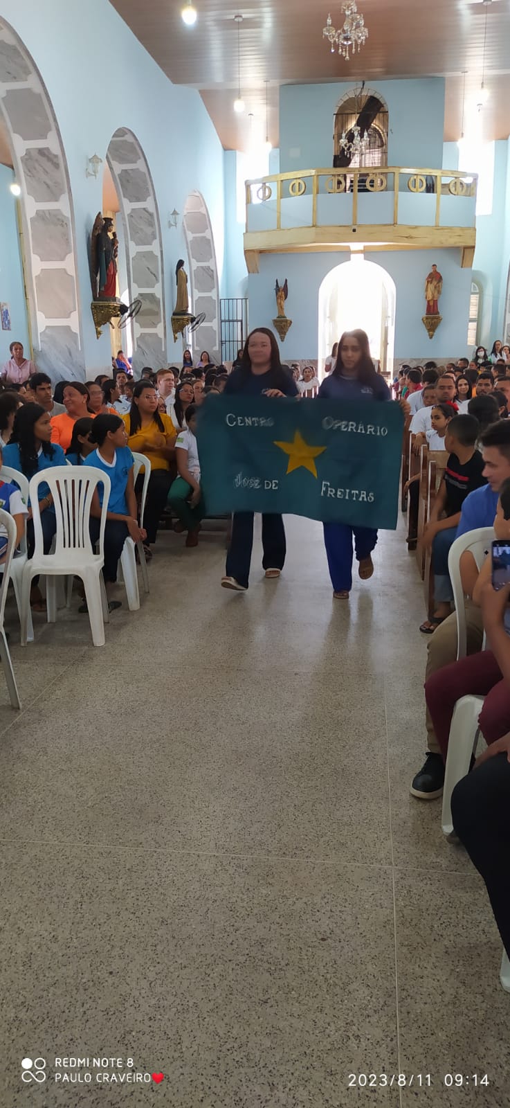 No inicio da missa teve a entrada das representatividades das entidades educacionais do município, tendo à frente os representantes da Secretaria de Educação seguidos por demais entidades de ensino do município. Por fim a equipe celebrativa.