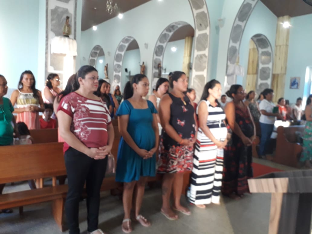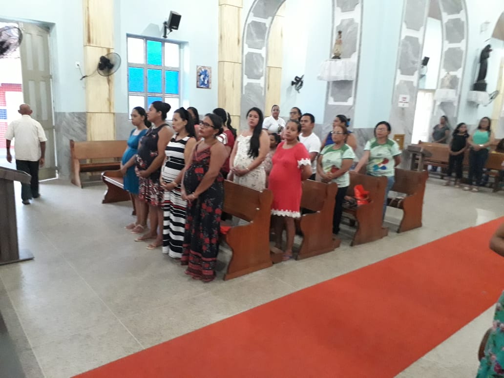 No inicio da missa as gestantes entraram em procissão, juntamente com a equipe da Pastoral da Criança e Pastoral Familiar acompanhados da equipe celebrativa.No final da celebração o Padre abençoou e benzeu todas as gestantes, onde também foi feita a oração do Nascituro.