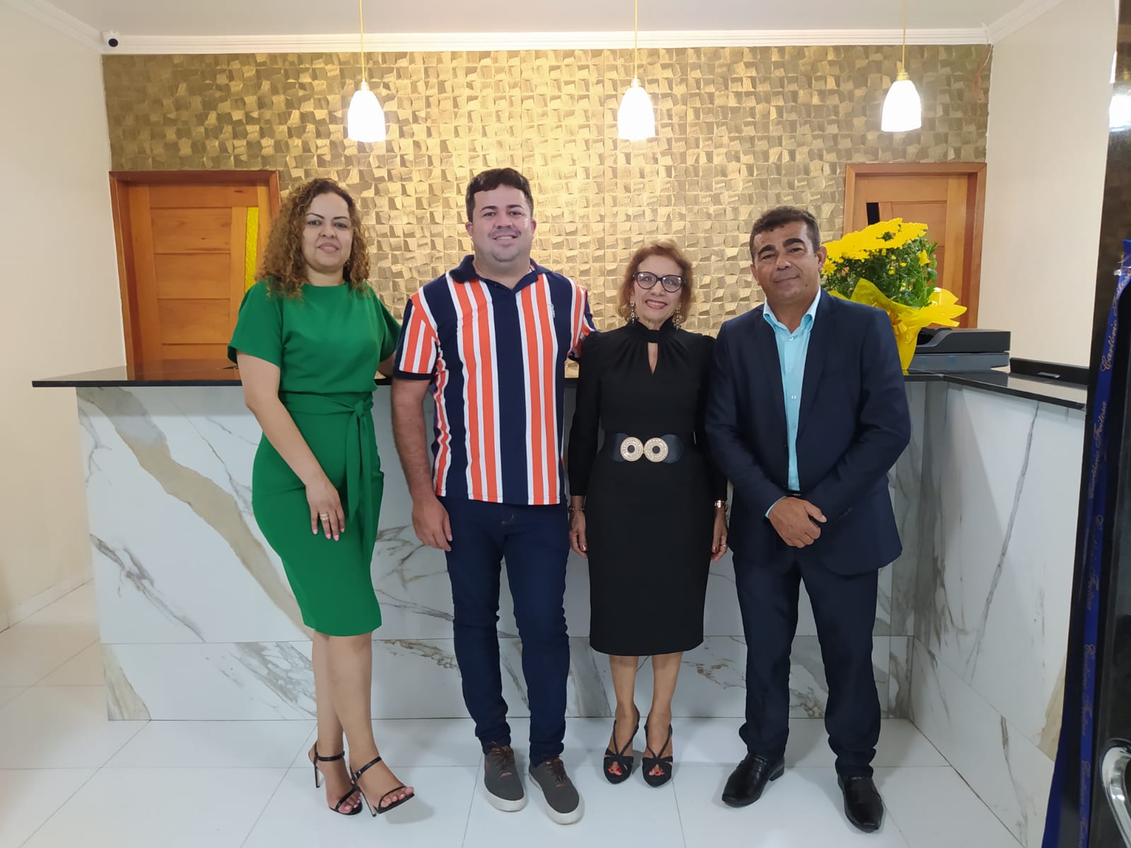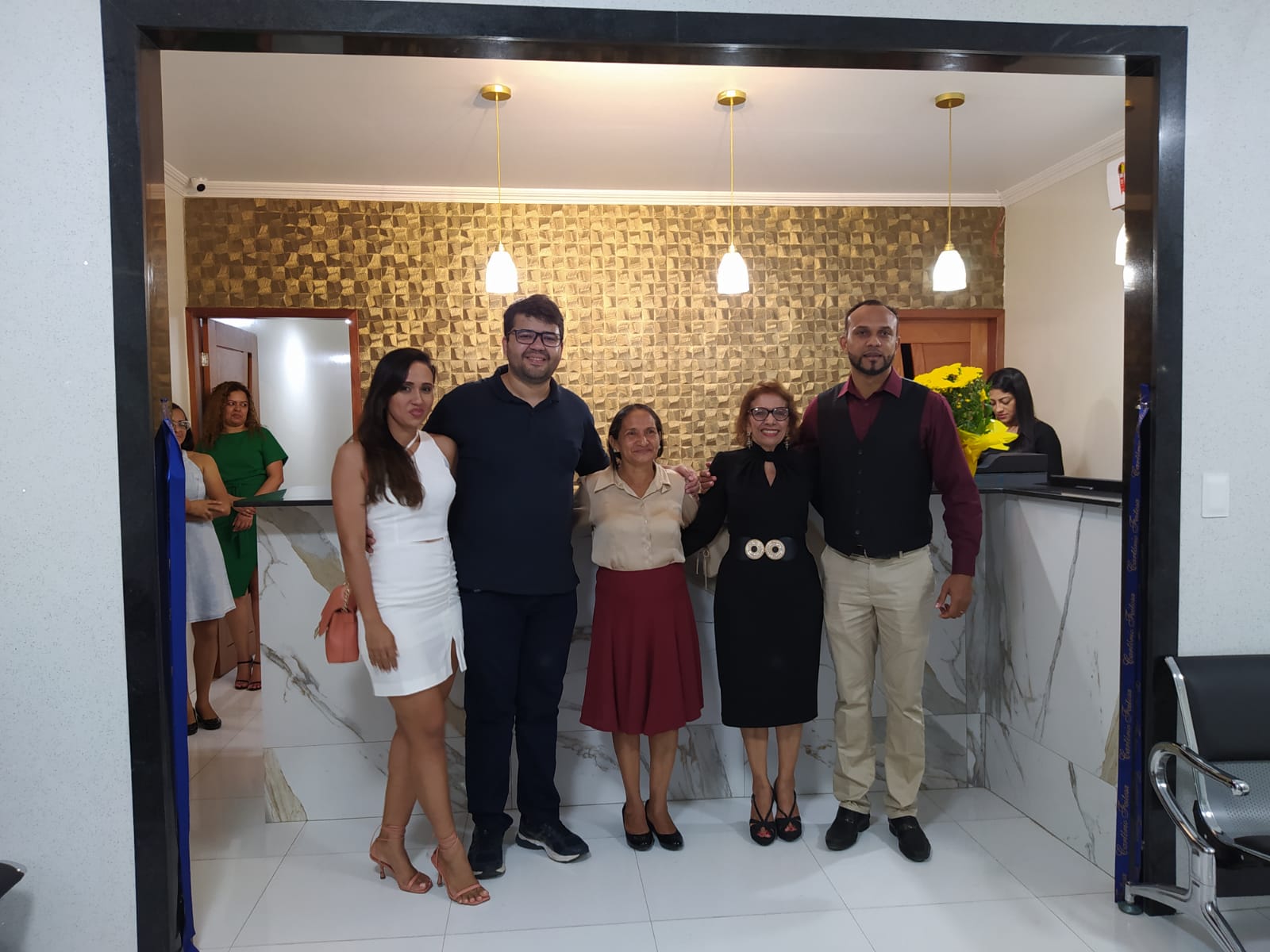 O primeiro momento, após saudar os convidados, dar as boas vindas e agradecer a presença de todos, Dra. Hilda convidou os funcionários da casa, algumas autoridades, como: Vice -prefeito Antônio Abreu, Presidente da Câmara Municipal de José de Freitas, vereador Tiago das Neves Pinto, advogados presentes para a benção do local de trabalho e o corte da fita.