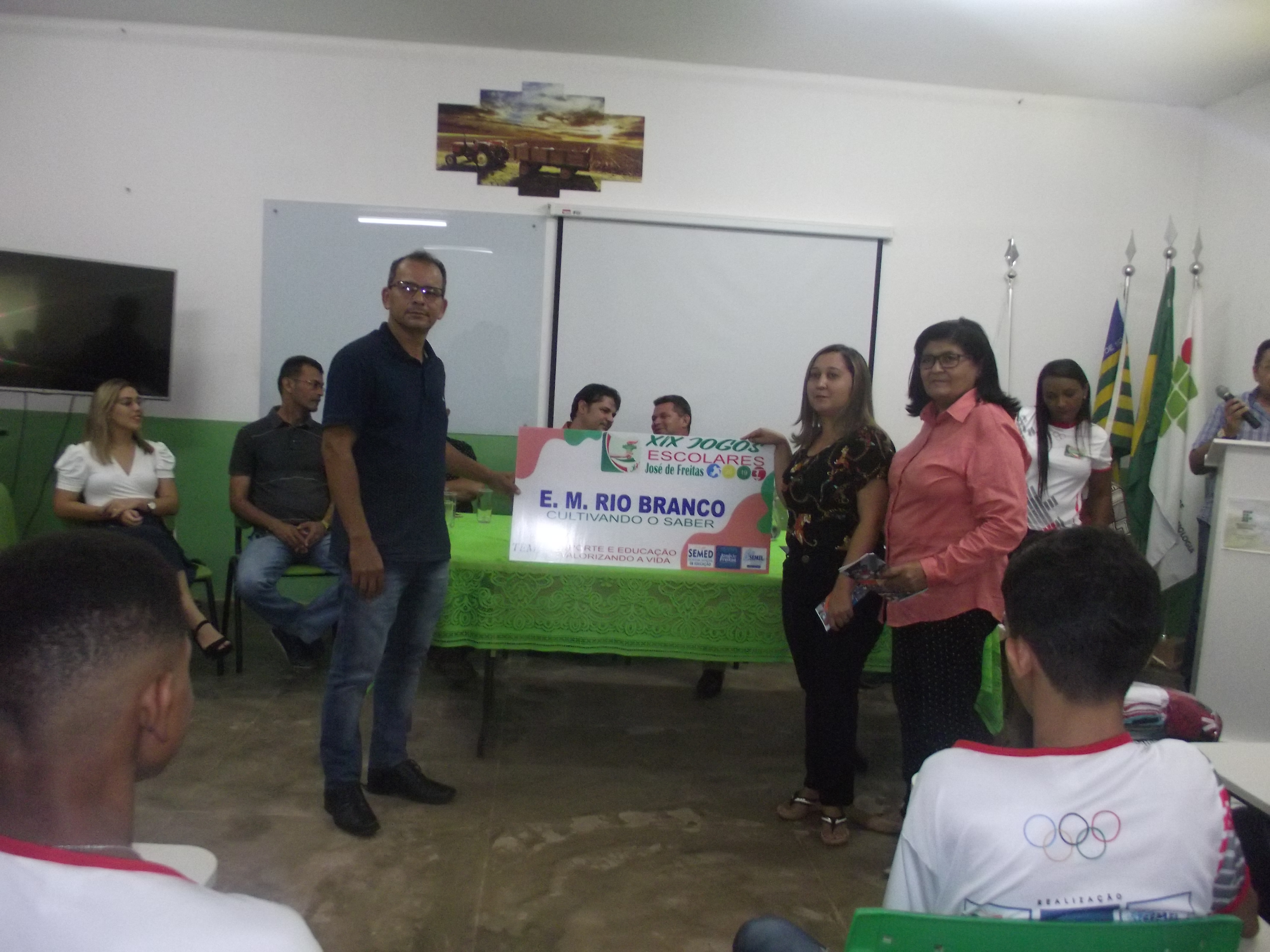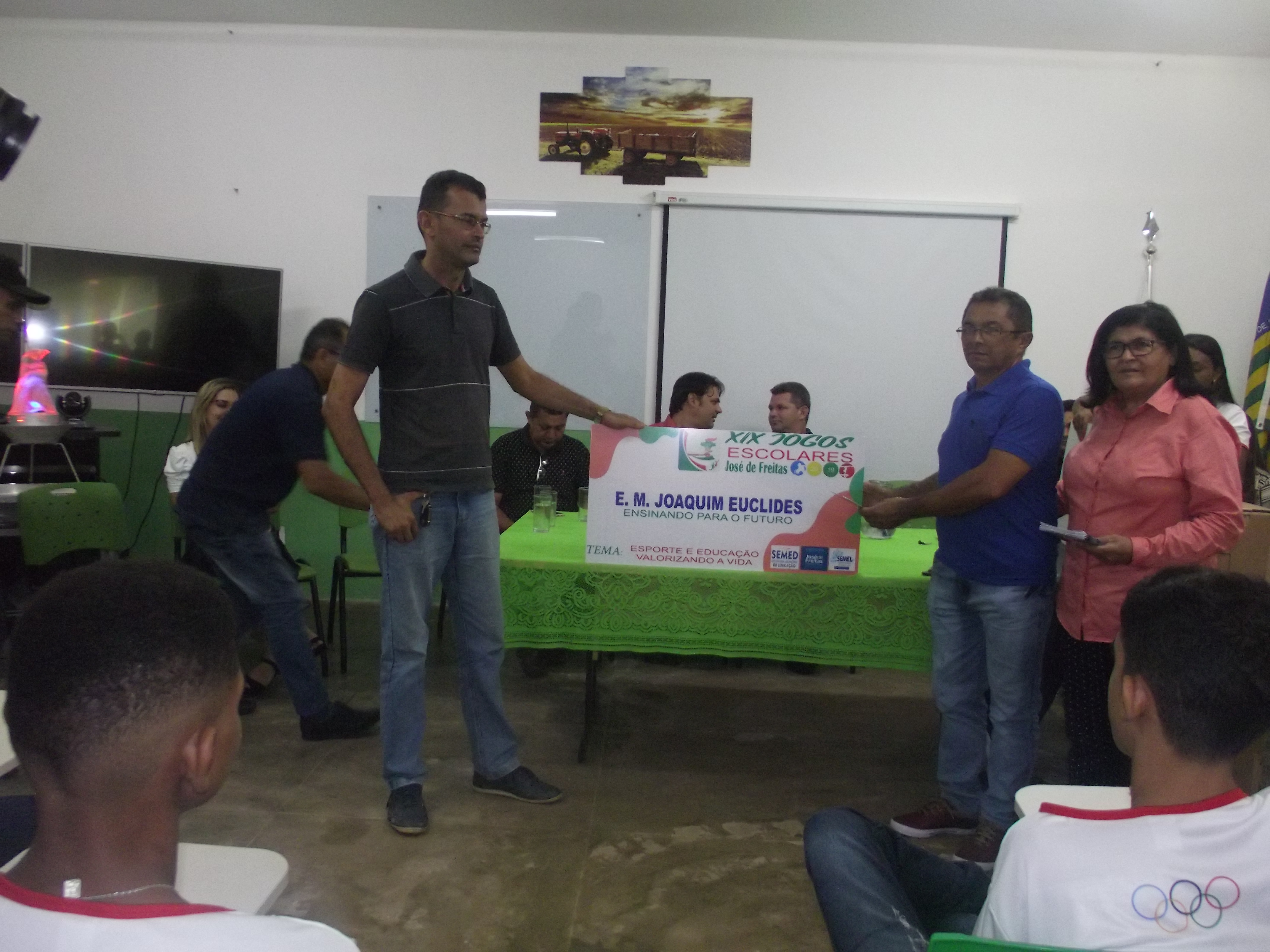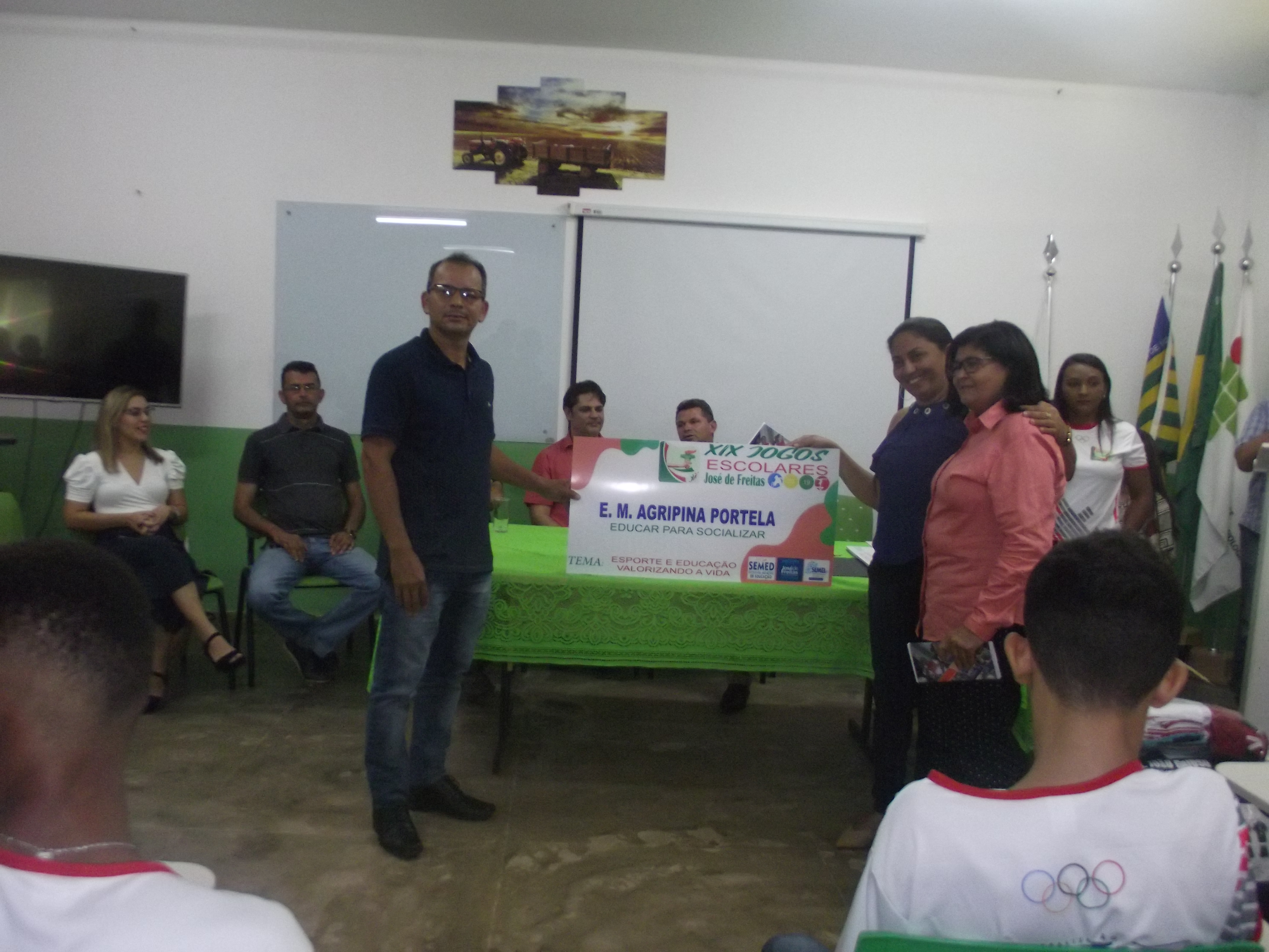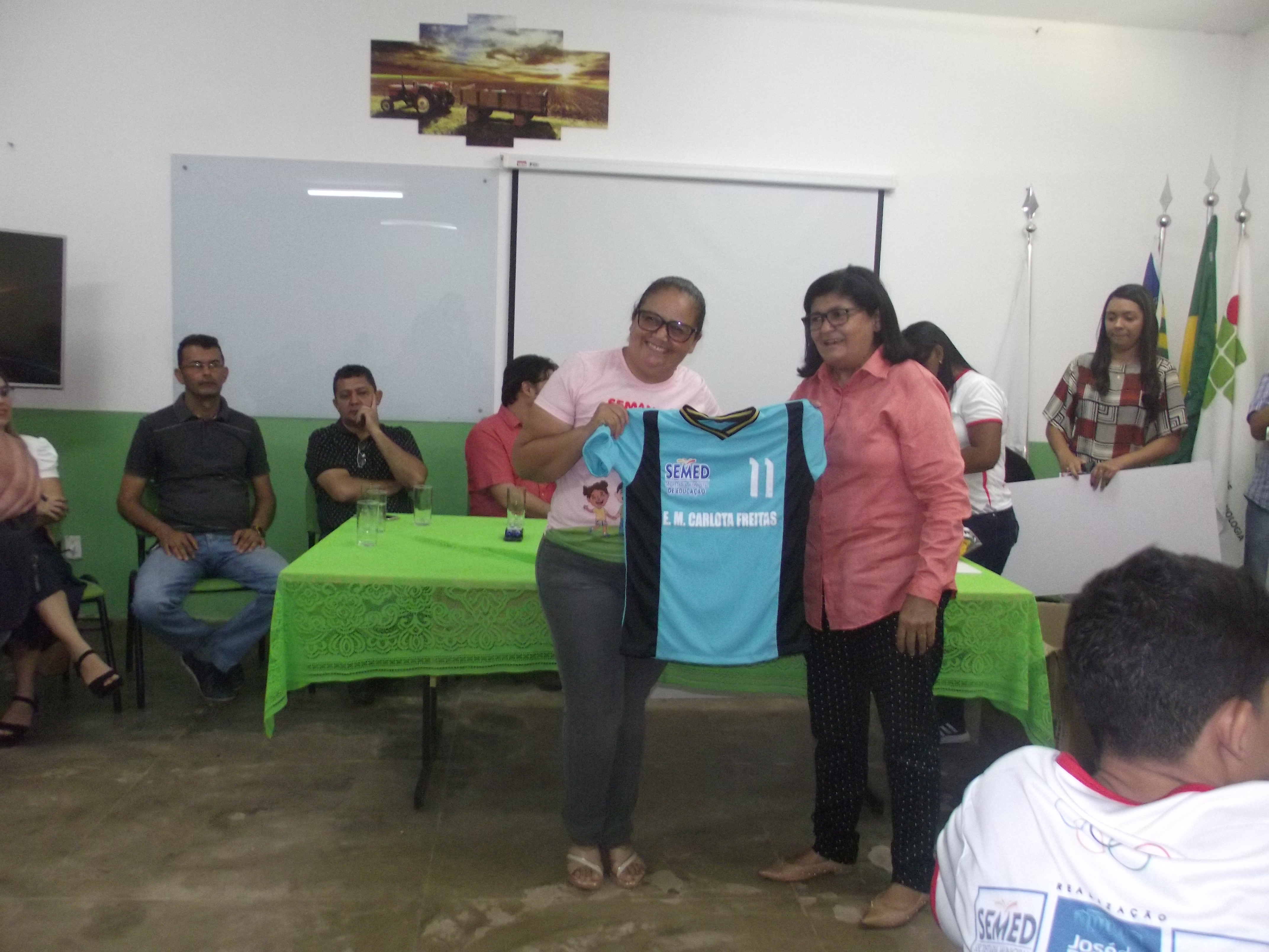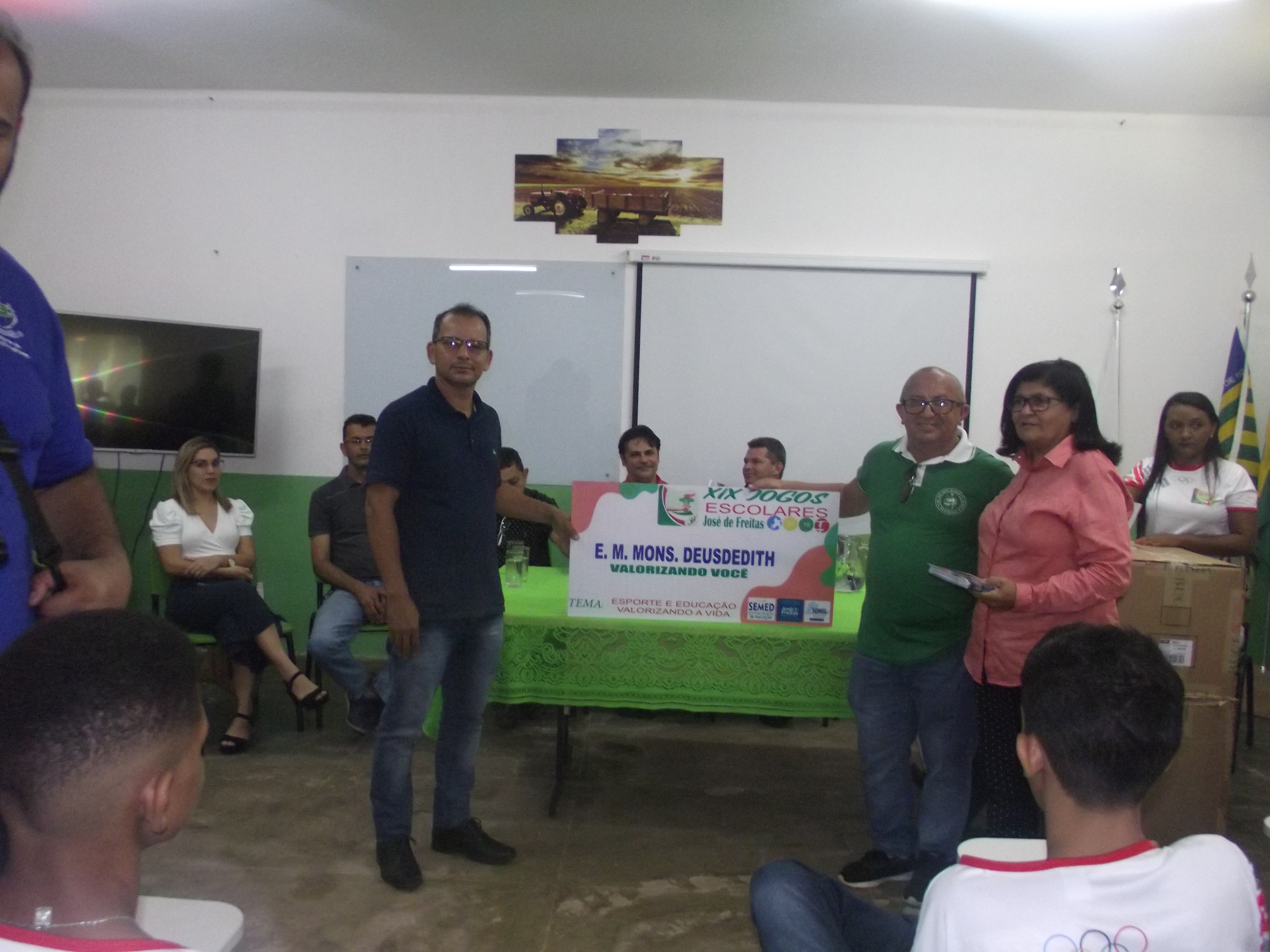 Dentro do evento foram entregues aos diretores das escolas que irão participar dos Jogos Escolares, as placas com os nomes das escolas participantes e os uniformes que os atletas irão utilizar nas competições.